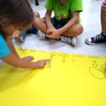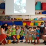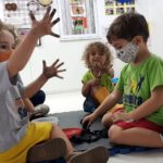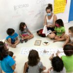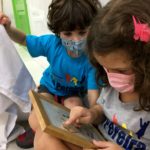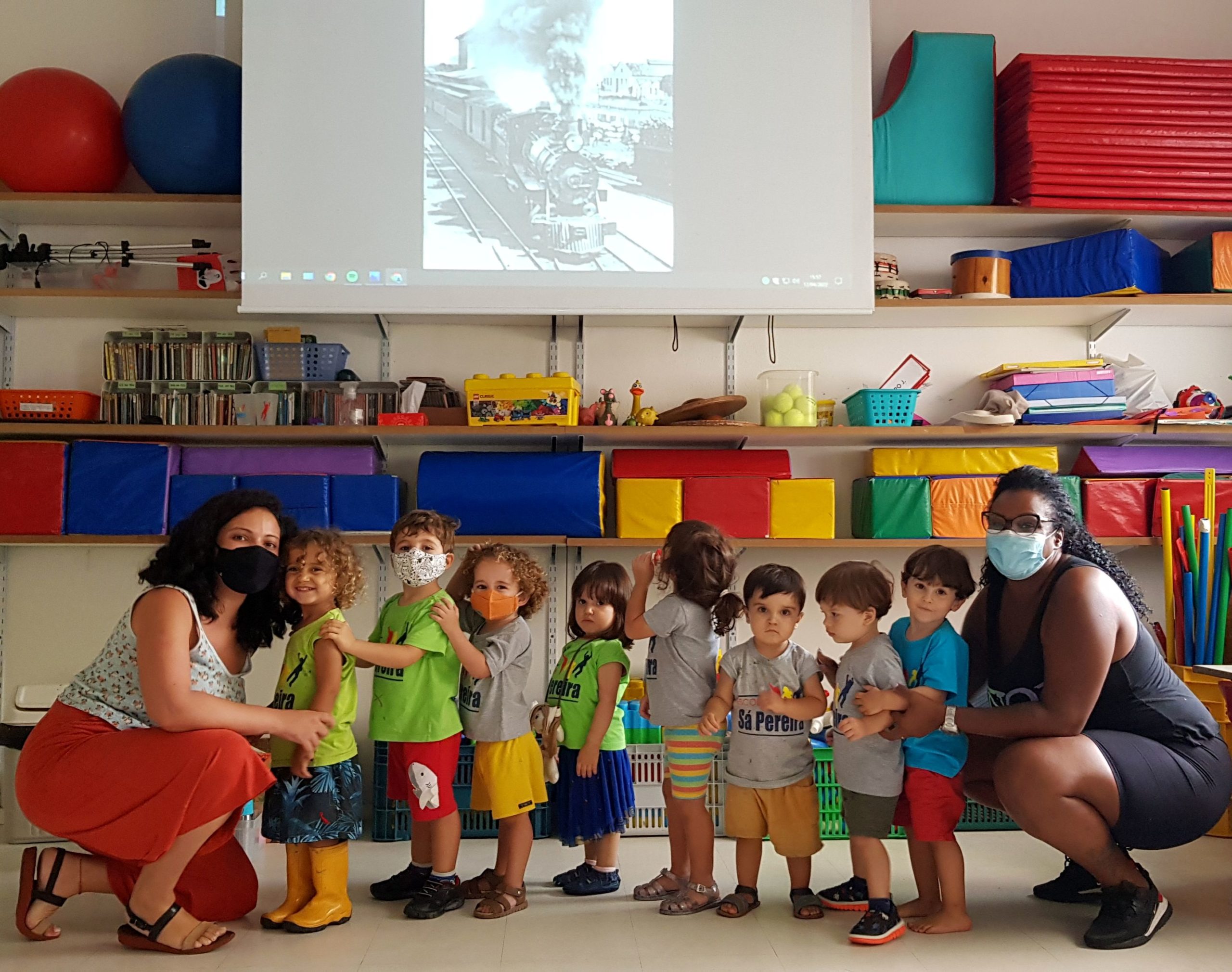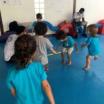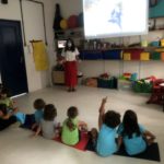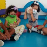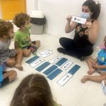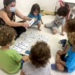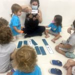 Garantimos inicialmente que elas vivenciem, de forma lúdica, a função social da leitura e da escrita, através de propostas como rodas de leitura, organização de listas, brincadeiras cantadas e rimadas, rodas de planejamento diário etc.