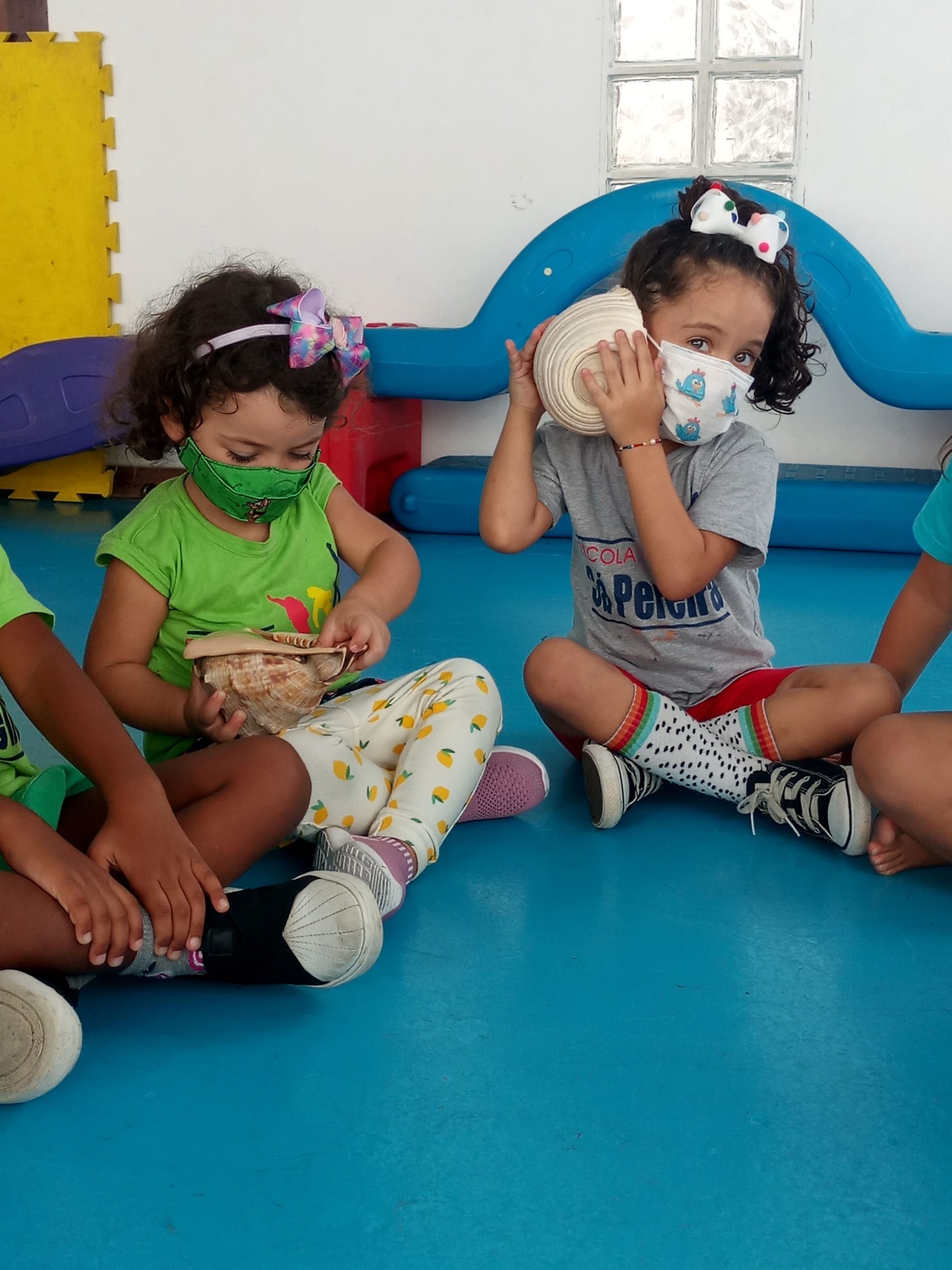 Descobrimos que podemos ouvir o barulho do mar ao aproximar uma concha do ouvido, e nos inspiramos para escrever As Conchas e o Mar Alegre.
