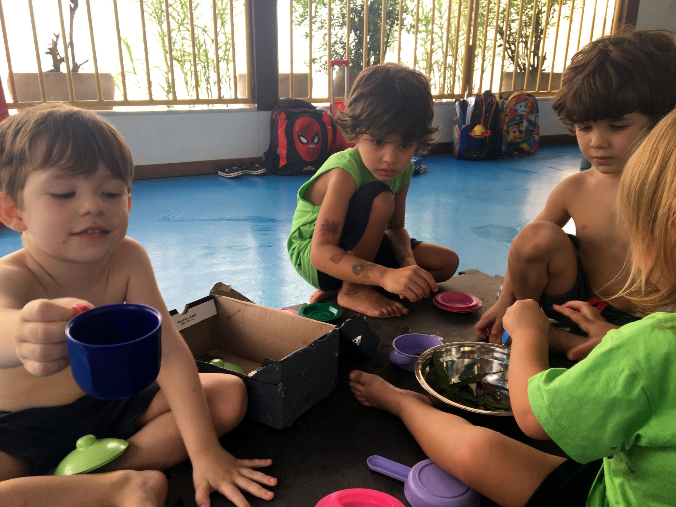 Pegamos nossas panelinhas e ingredientes naturais para fazer comidinhas.