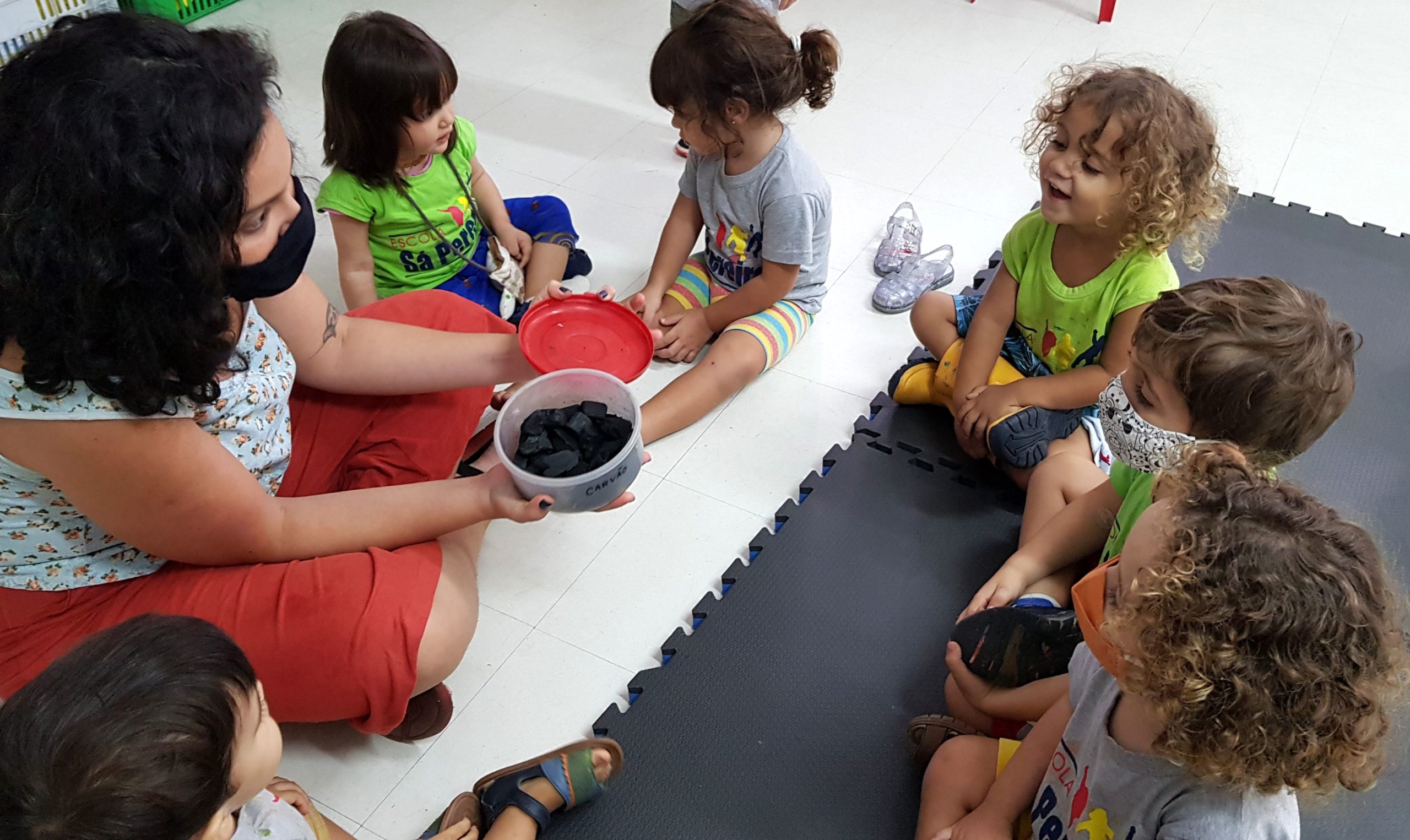 O combustível dos primeiros trens era o vapor obtido pela queima do carvão. As crianças foram surpreendidas por esse material, sentiram sua textura e seu pó se espalhando nas palmas das mãos.