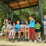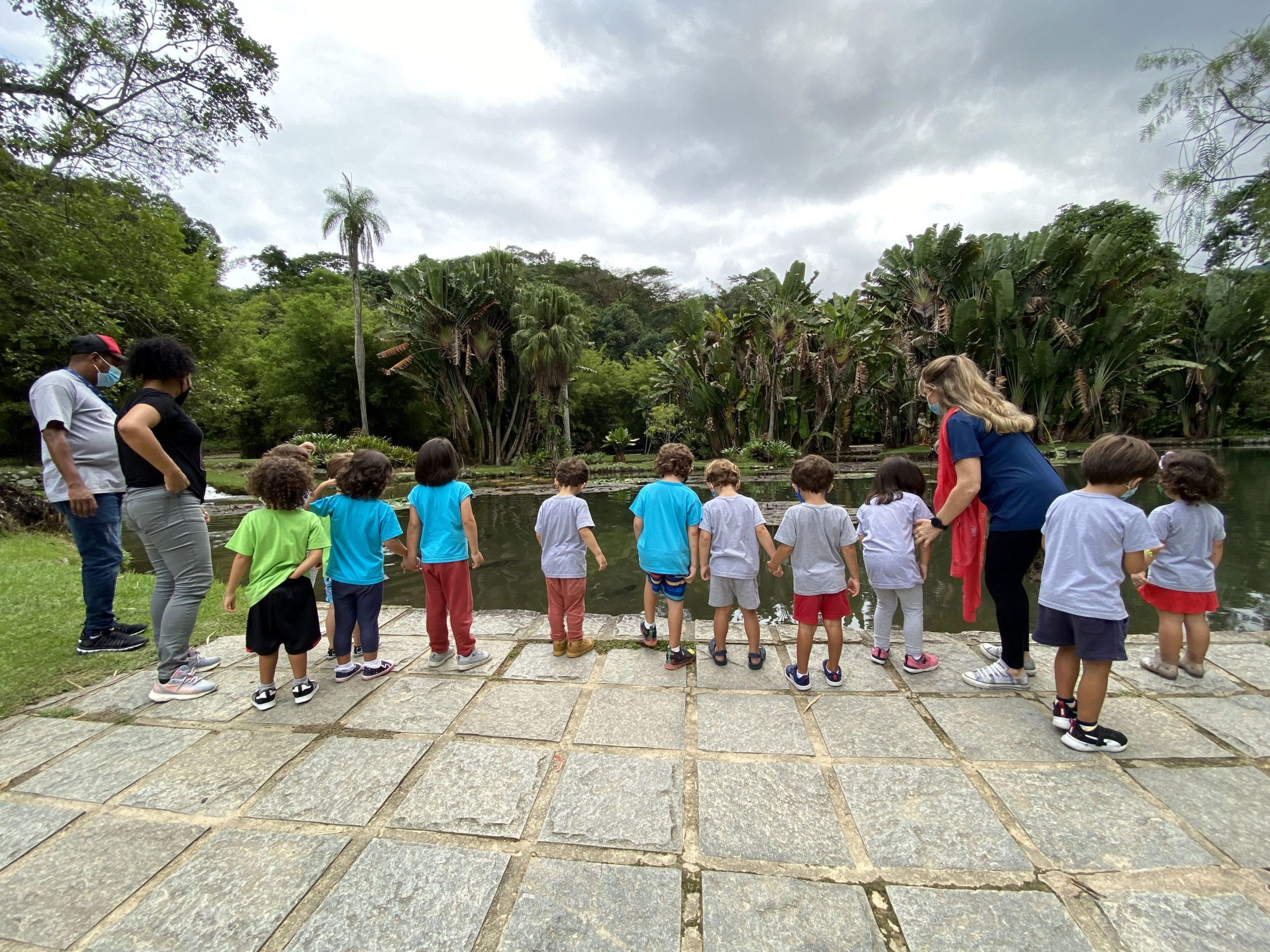 “A Turma da Máquina fez um passeio para o Jardim Botânico de ônibus. Sentamos nos bancos e colocamos o cinto de segurança. Chegando lá, cada um escolheu um lugar para tirar uma fotografia. No Jardim Botânico tinha um lago com várias tartarugas, palmeiras, pedras, um peixe muito grande que parecia um tubarão, árvores, micos e bambuzais. Não encontramos morcegos, cobras, girafas e nem o Saci. Quando acabou o passeio, pegamos o ônibus de volta para a escola. O passeio foi muito legal. Queremos voltar num outro dia.”