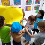 As crianças se surpreenderam ao conhecer a variedade de pontos, os tamanhos dos bastidores, as espessuras das agulhas e linhas.