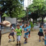 Na roda, os pequenos ficaram atentos ao chamado: “Alô bateria”, para o coro responder “Alô!”. Depois de muitas cantigas, as crianças se despediram cantando assim: