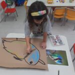 Como consequência dessa observação, construímos, em coletivo, uma ant em grande proporção, na qual cada criança foi desafiada a desenhar uma parte do corpo da formiga a partir dos comandos em inglês: