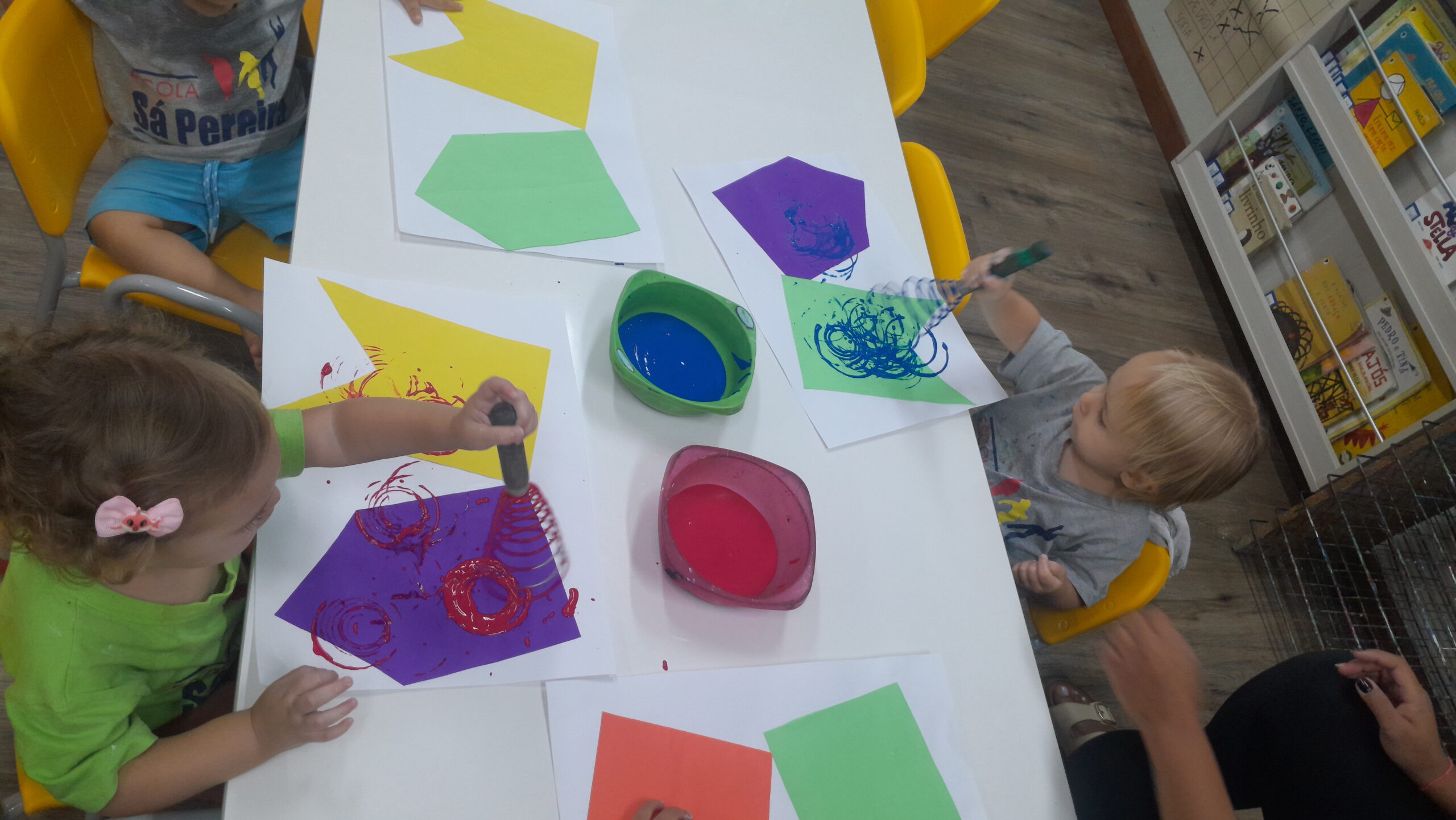 Ouvimos e dançamos as músicas que vamos dançar na Festa Junina, e as crianças estão se divertindo durante todo o processo! Pintamos bandeirinhas e fizemos brincadeiras juninas. Aos poucos, as crianças estão descobrindo mais sobre a nossa cultura e sobre essa festa tradicional.