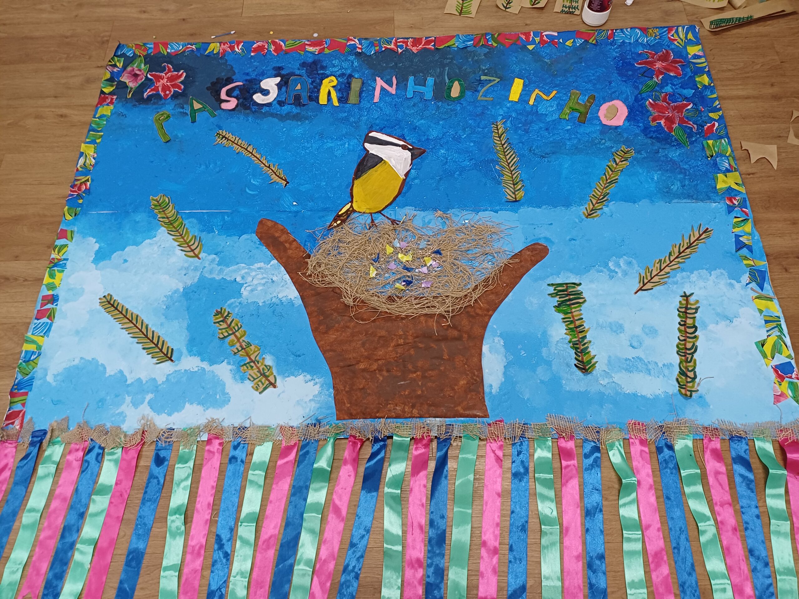 Em nosso repertório julino, a música Passarinhozinho, de Leves Cantos, foi inspiração para a criação do painel coletivo que estará na decoração do festejo.