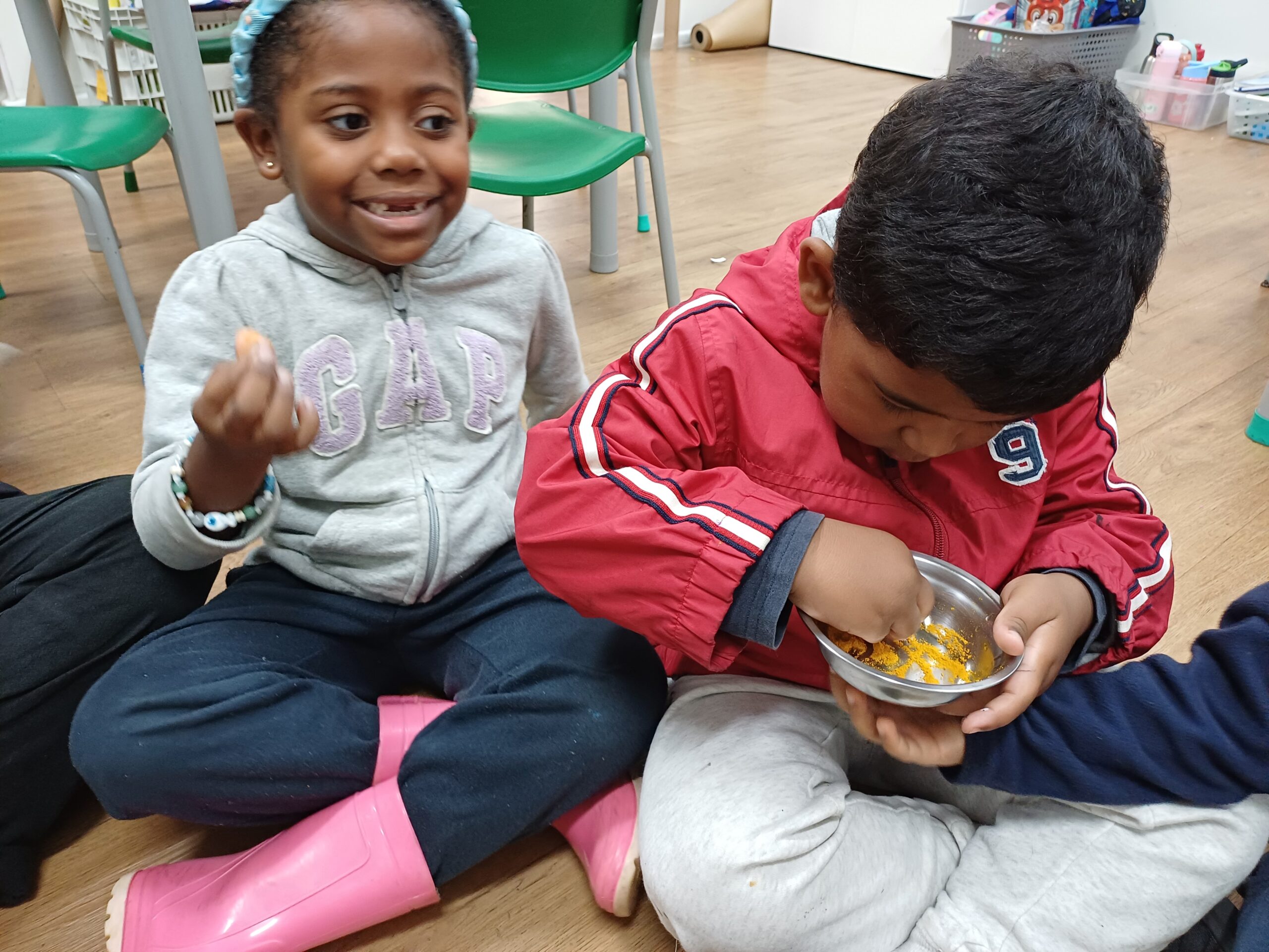 Continuando nosso olhar pela Índia, conhecemos a cúrcuma, uma das especiarias utilizadas na cultura indiana. Aproveitamos para observar sua cor, criando uma tinta natural a partir desse tempero.