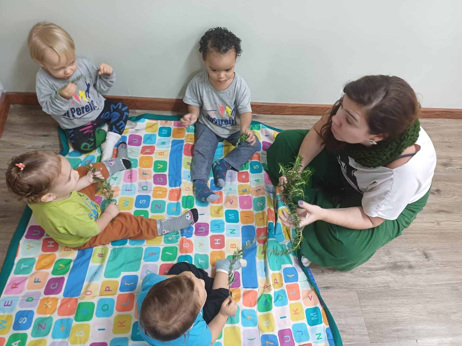 As crianças também cheiraram e experimentaram o tempero alecrim, citado em uma das músicas.