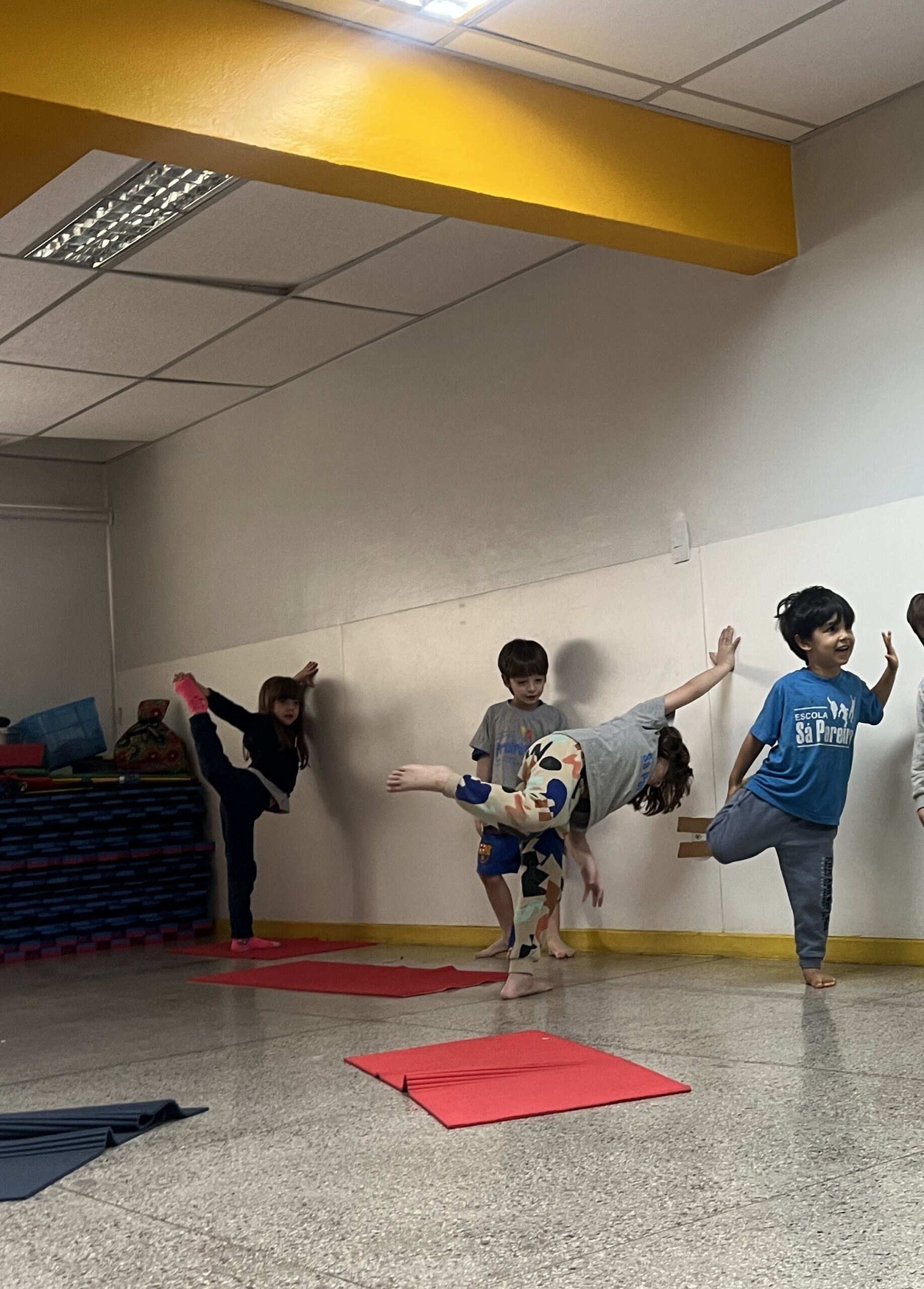 Ao som de músicas que farão parte do repertório da nossa festa, brincamos de Estátua Iogue e colocamos à prova nossa memória dos asanas já aprendidos.