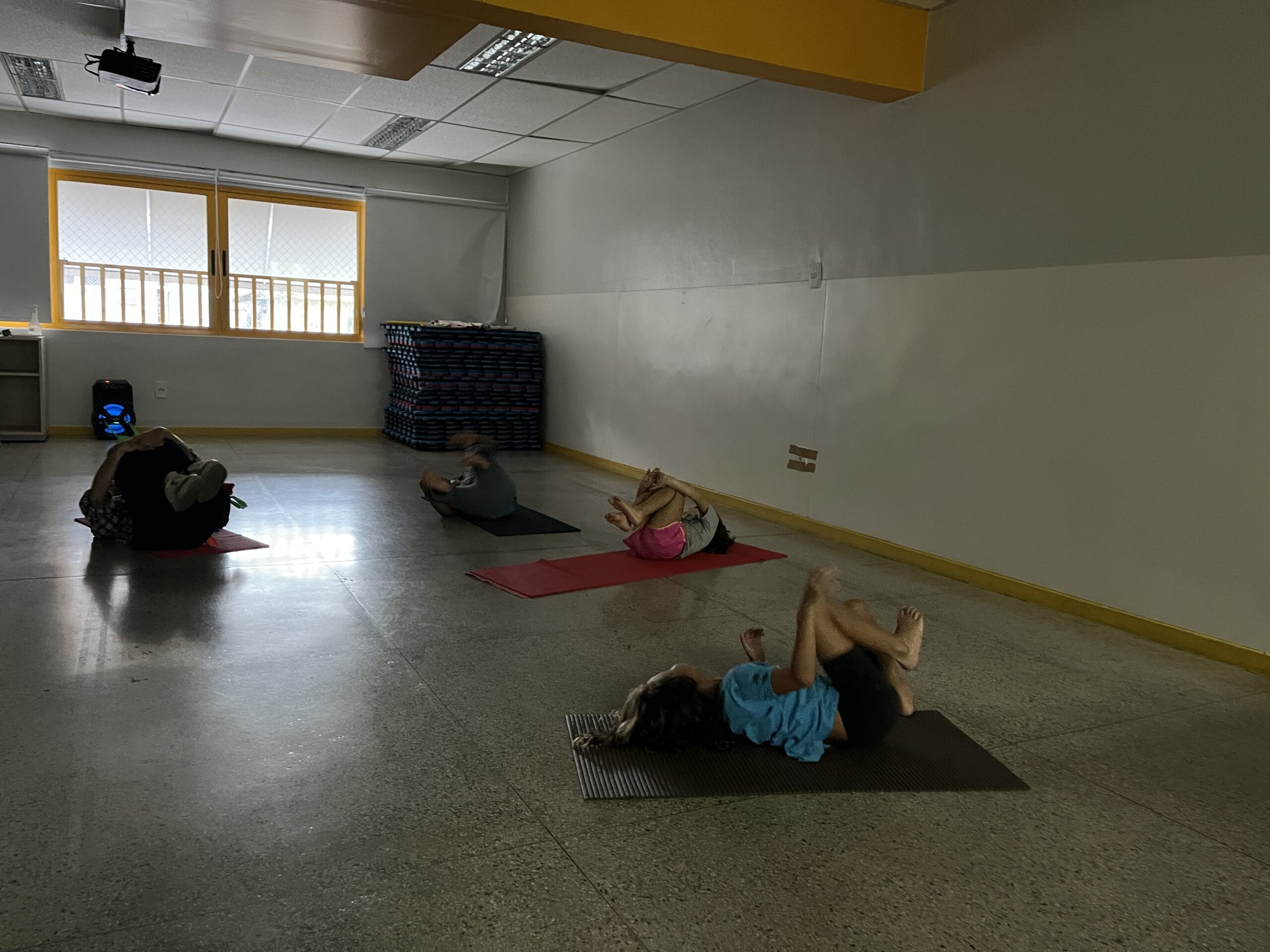 Nas aulas de Ioga, após concentrarmos a atenção em nosso corpo e na respiração, acalmando a mente e as emoções, realizamos algumas posturas que desafiam o equilíbrio e os limites corporais para, em seguida, entrar no ritmo junino.