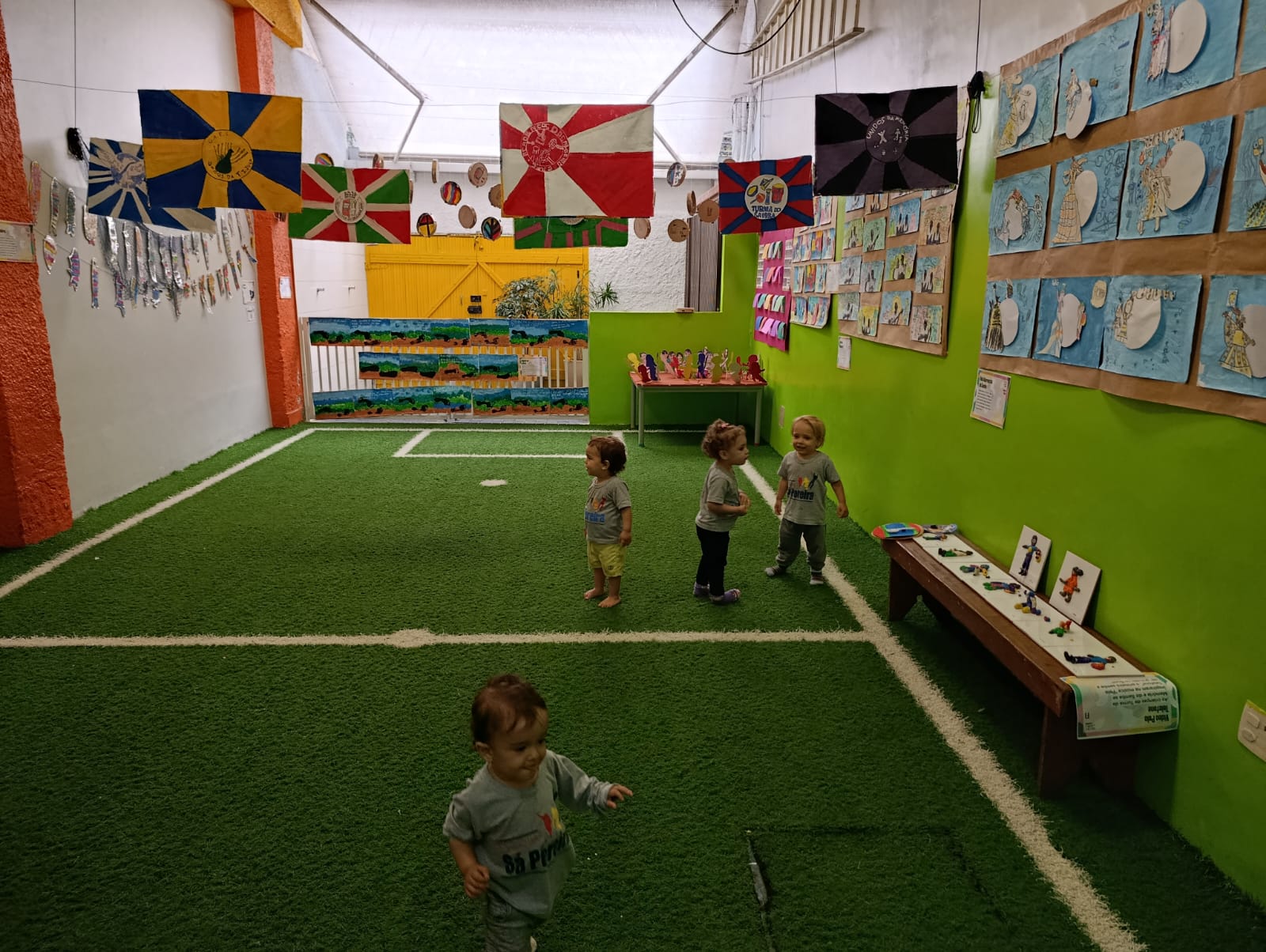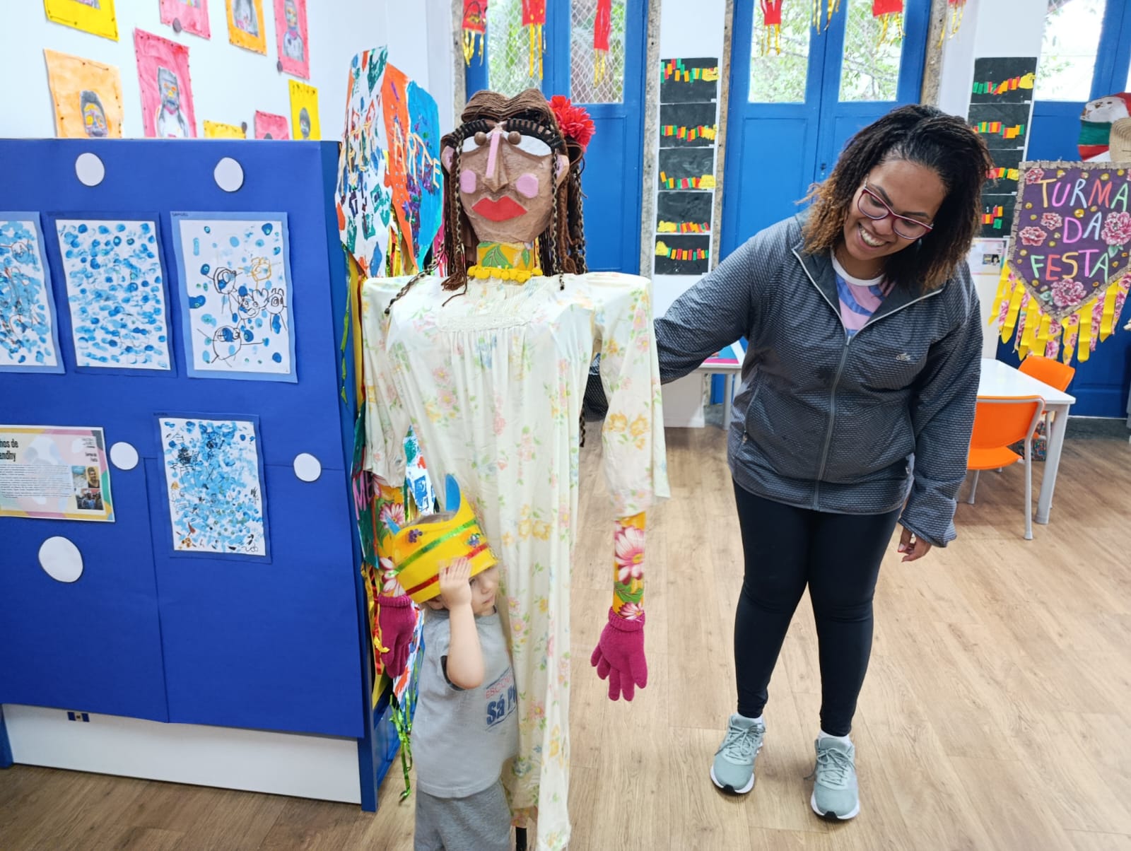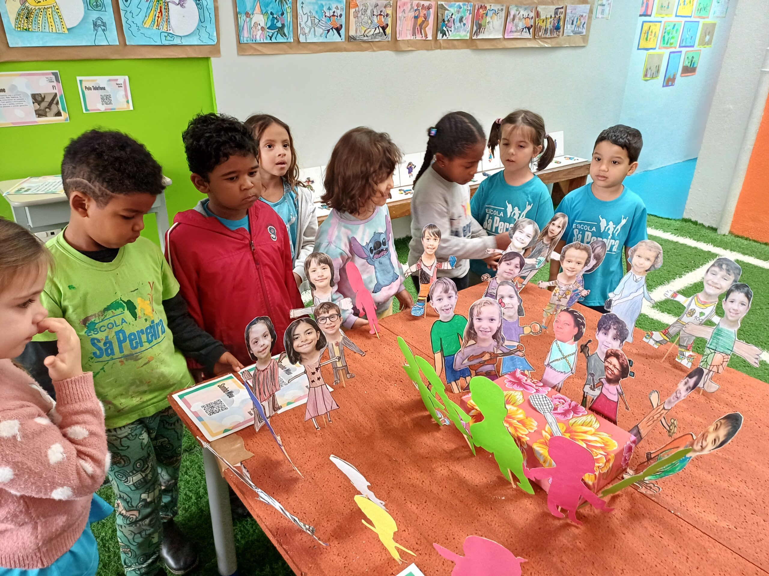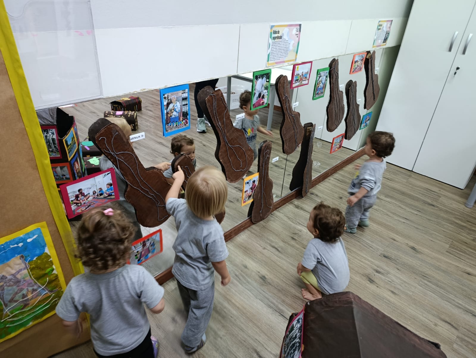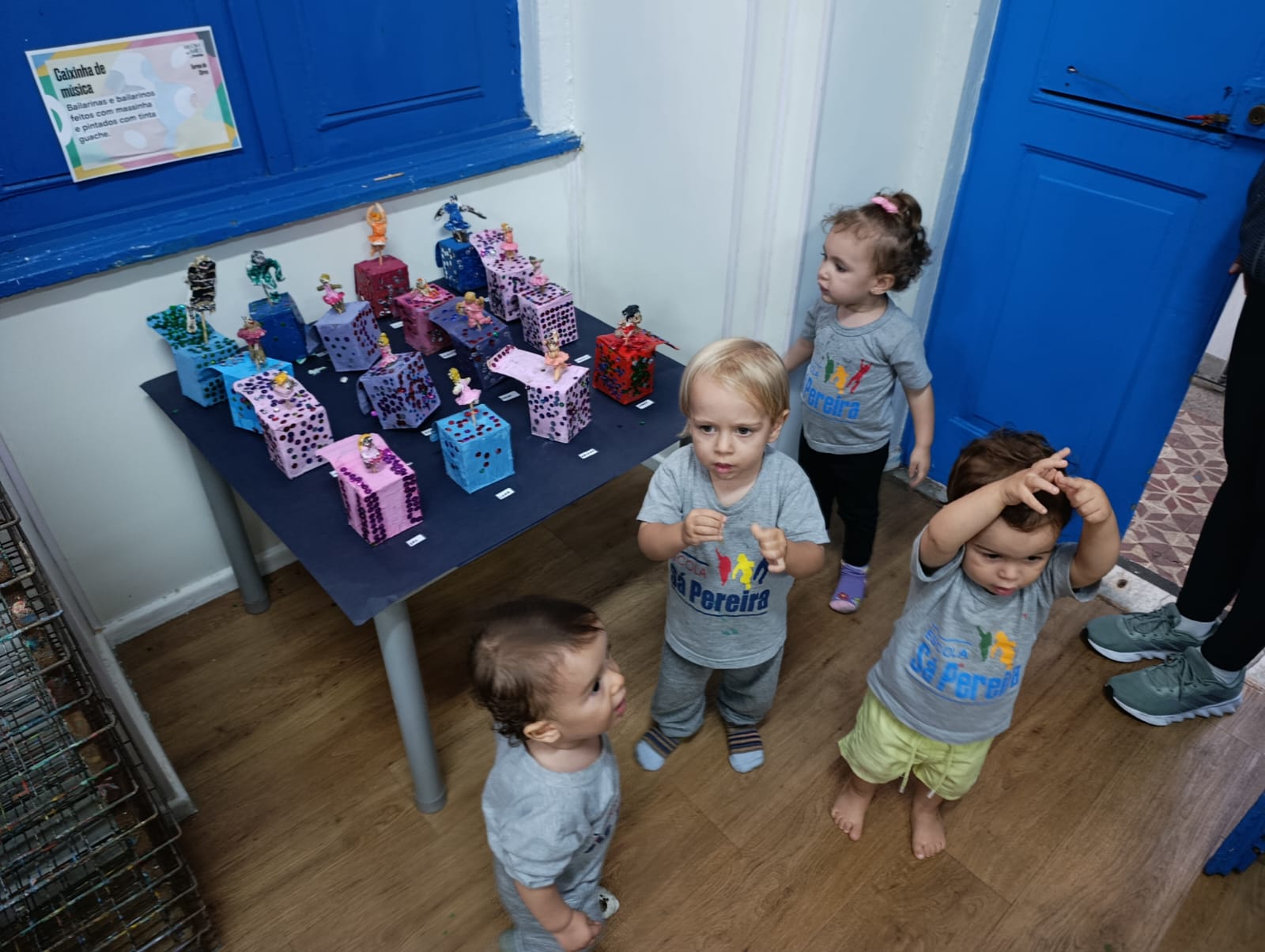 Nossa turma amou ver os pandeiros do primeiro ano, a miniatura da roda de samba e os bonecos de massinha no azulejo. A nossa sala também foi visitada por outras turmas.