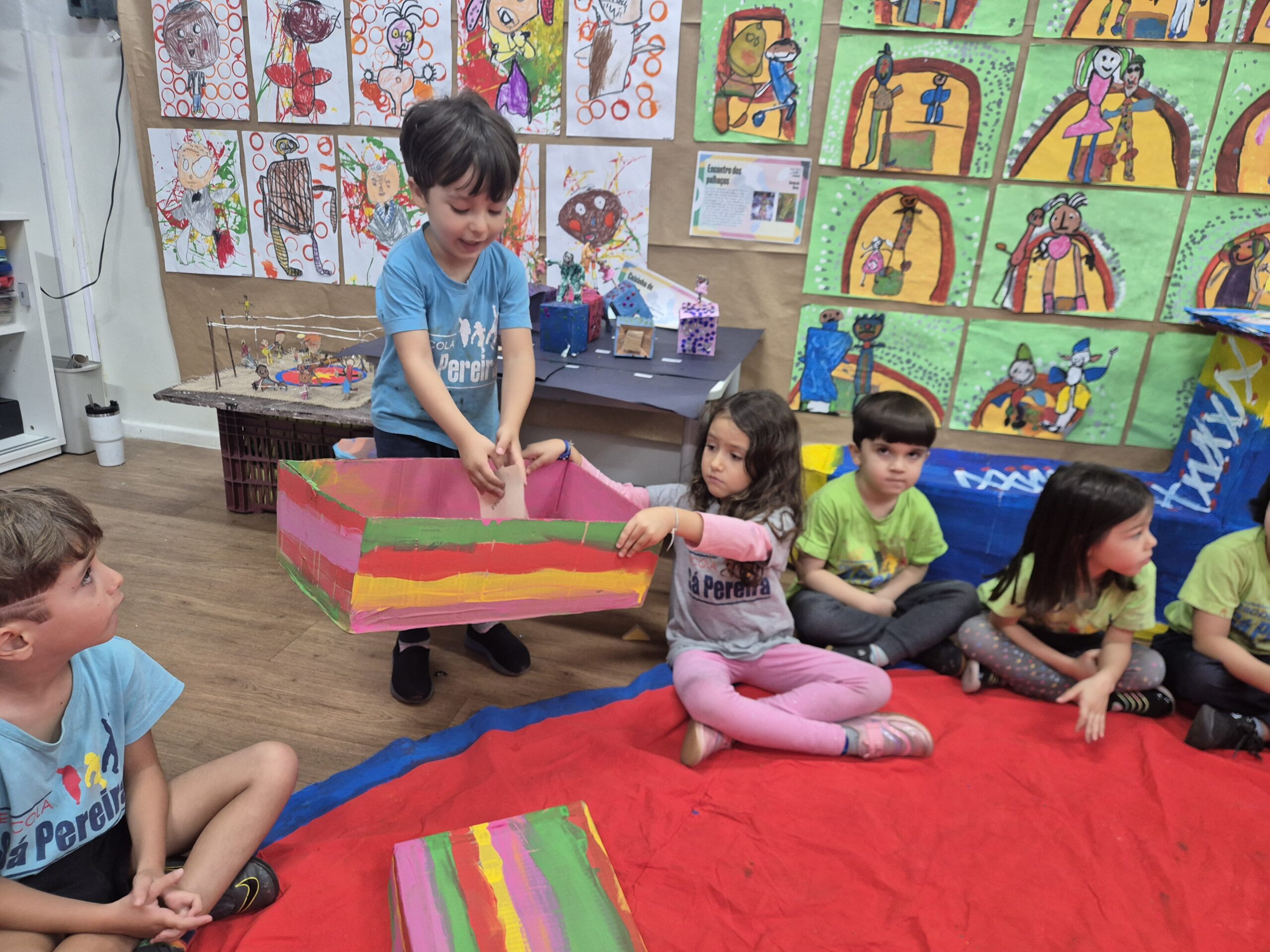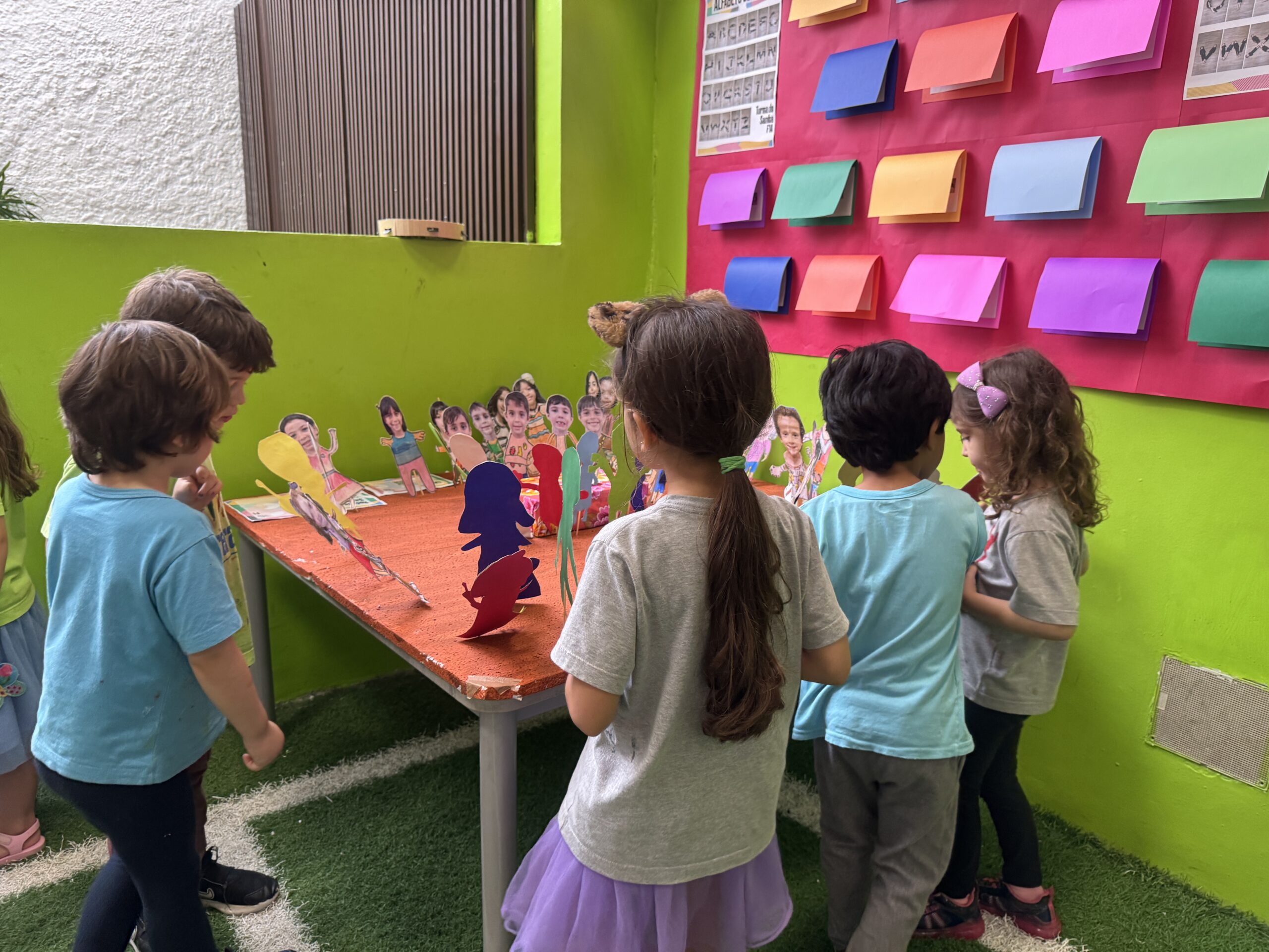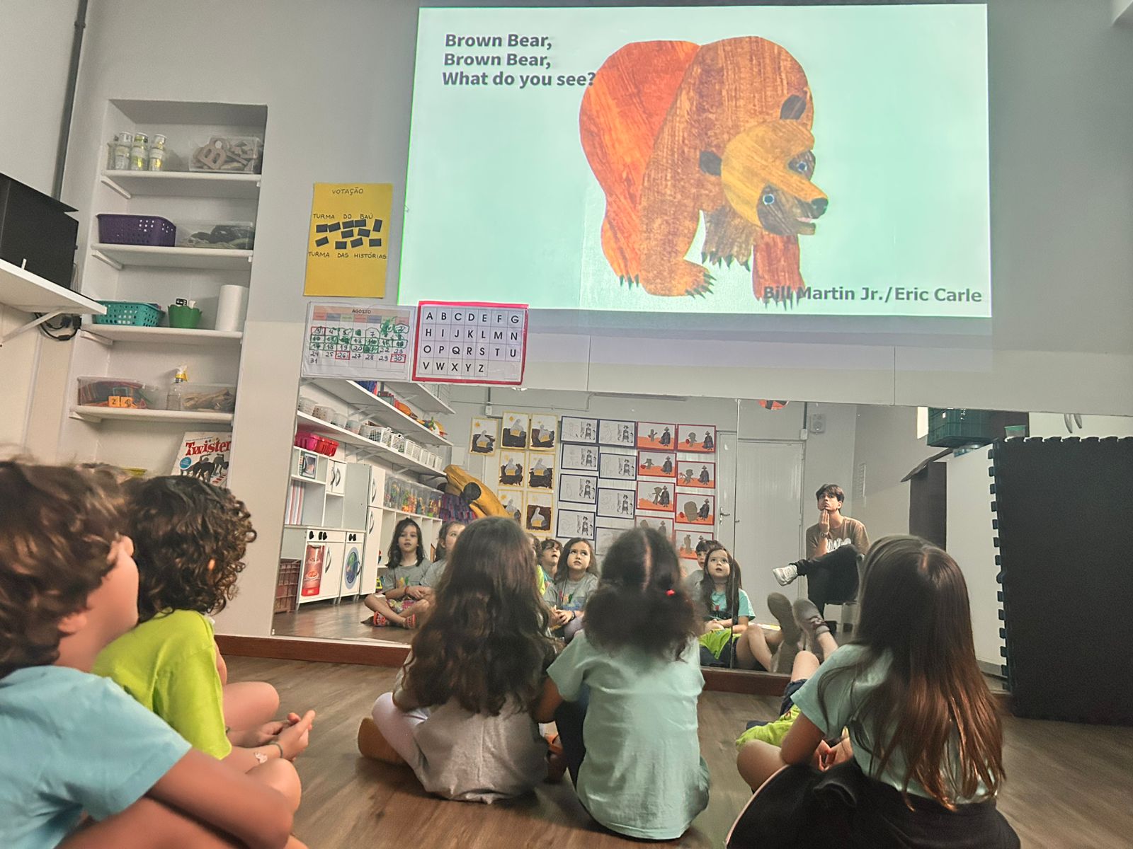 Na Educação Infantil, seguimos com o projeto de leitura das obras de Eric Carle. Neste bimestre, mergulhamos no livro Brown Bear, Brown Bear, What Do You See?, descobrindo nomes de animais e explorando, com a imaginação, cores inusitadas: um cavalo azul? Um gato roxo? Tudo é possível no universo lúdico!