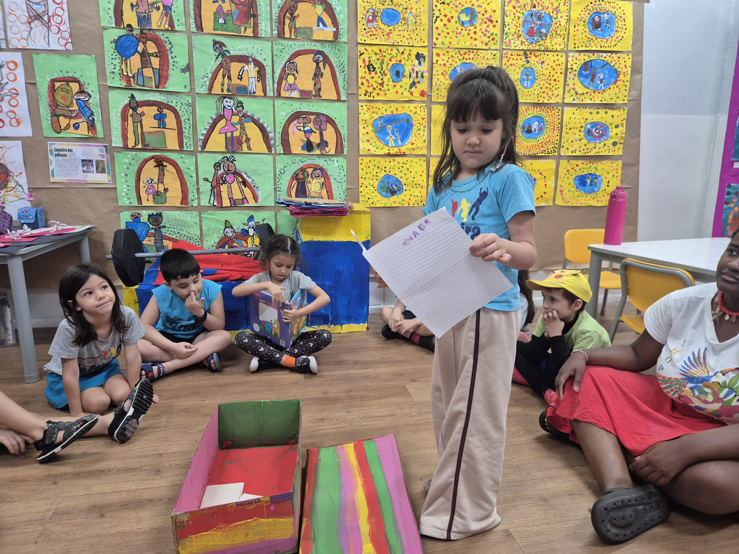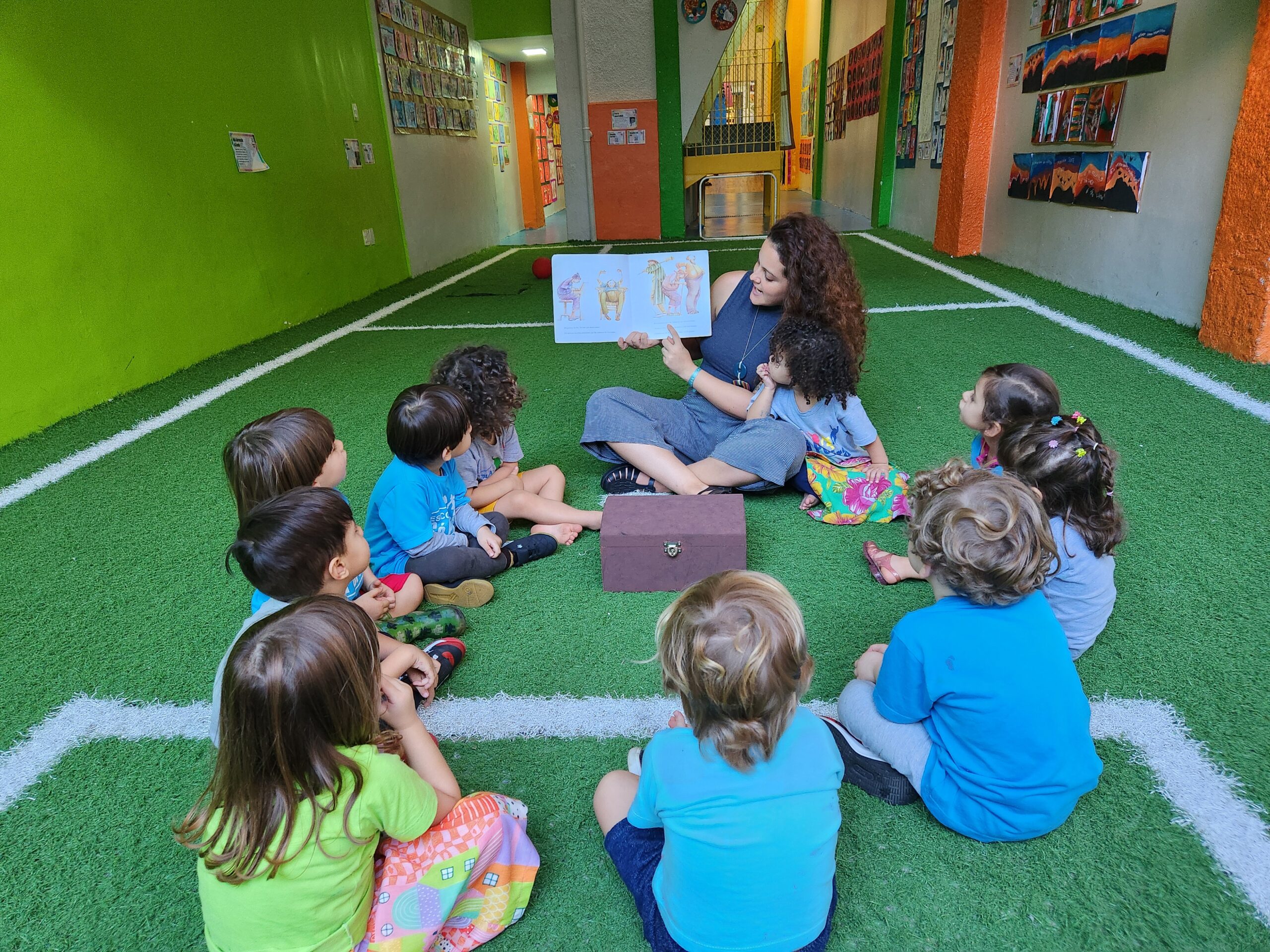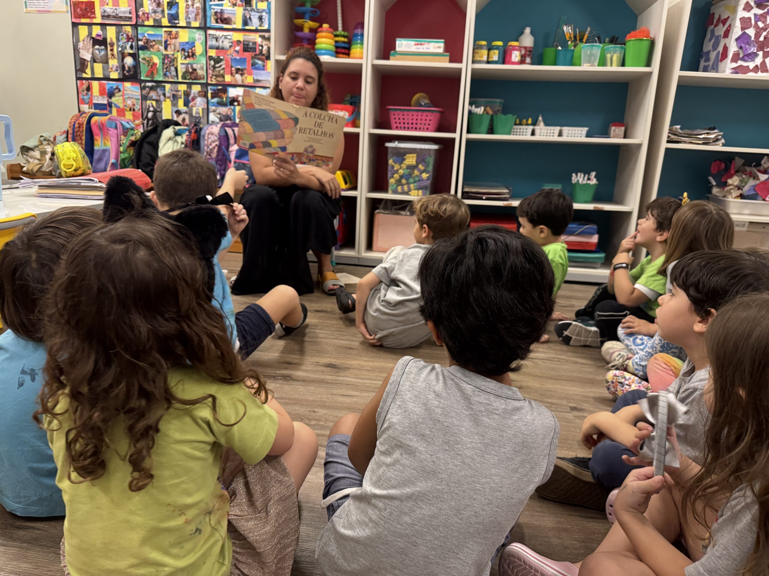 Essa vivência dialoga com nosso projeto sobre a memória, fortalecendo o contato das crianças com diferentes linguagens e saberes. A leitura amplia a escuta atenta, estimula a imaginação, favorece a oralidade e cria vínculos afetivos com os livros.