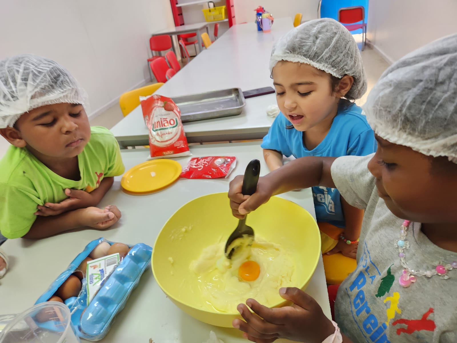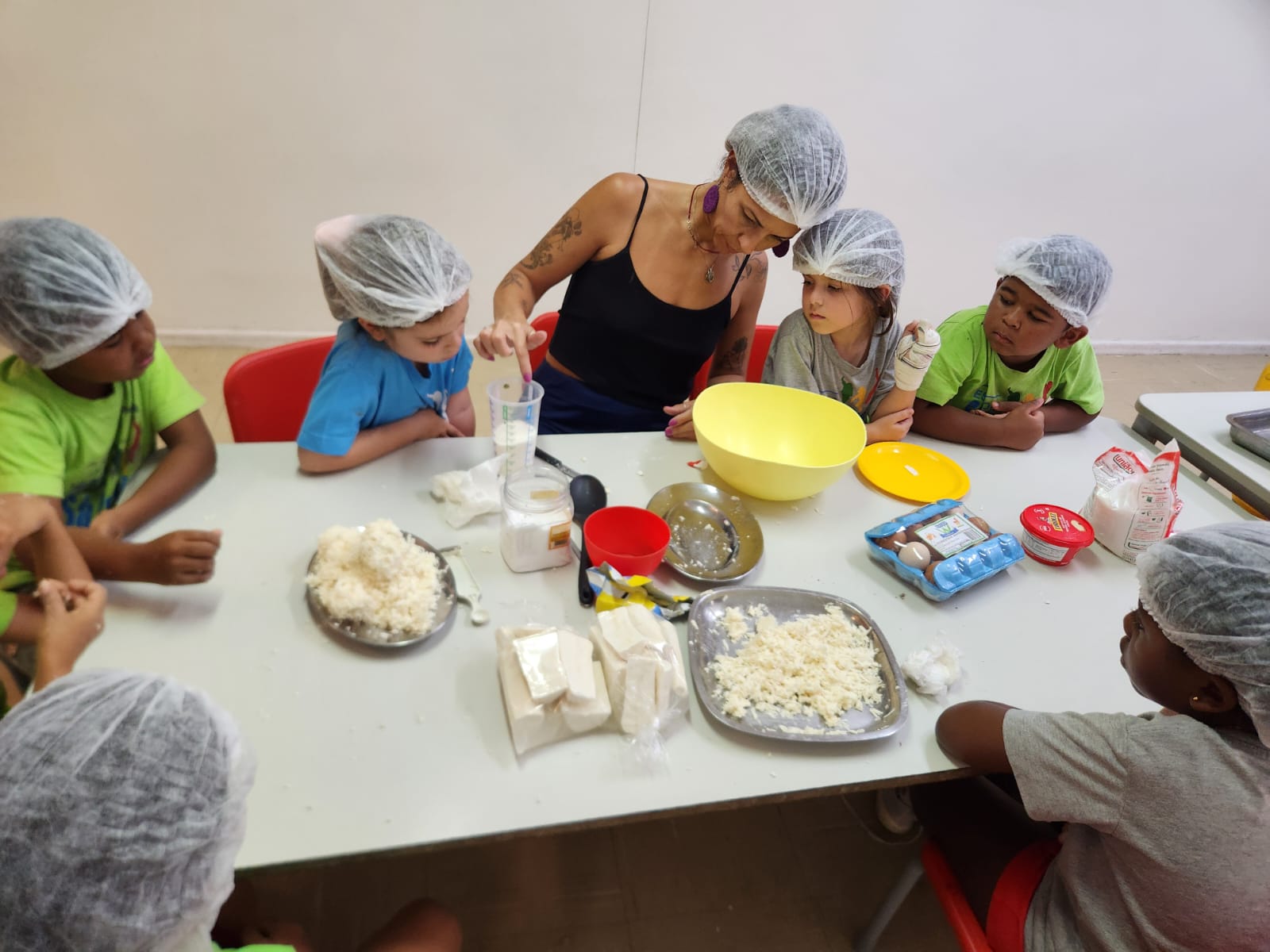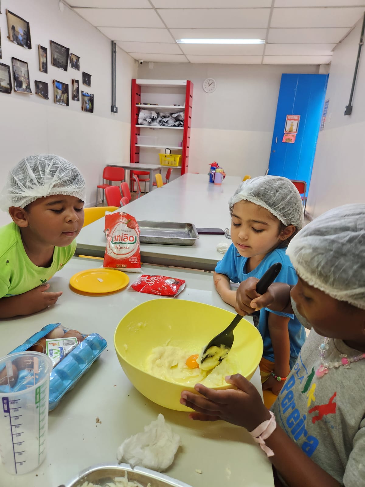 Para homenagear o grupo, preparamos uma deliciosa receita com um ingrediente que faz parte da dieta de muitos lares brasileiros: a mandioca. Conhecida por diversos nomes regionais, como maniva, macaxeira e o famoso aipim, representa um dos pilares da nossa cultura e com raízes profundas na história indígena. As crianças colocaram a mão na massa, atentas a cada ingrediente da receita. Assim, finalizamos nosso ciclo permeado de memórias, afetos e conquistas. Fim!