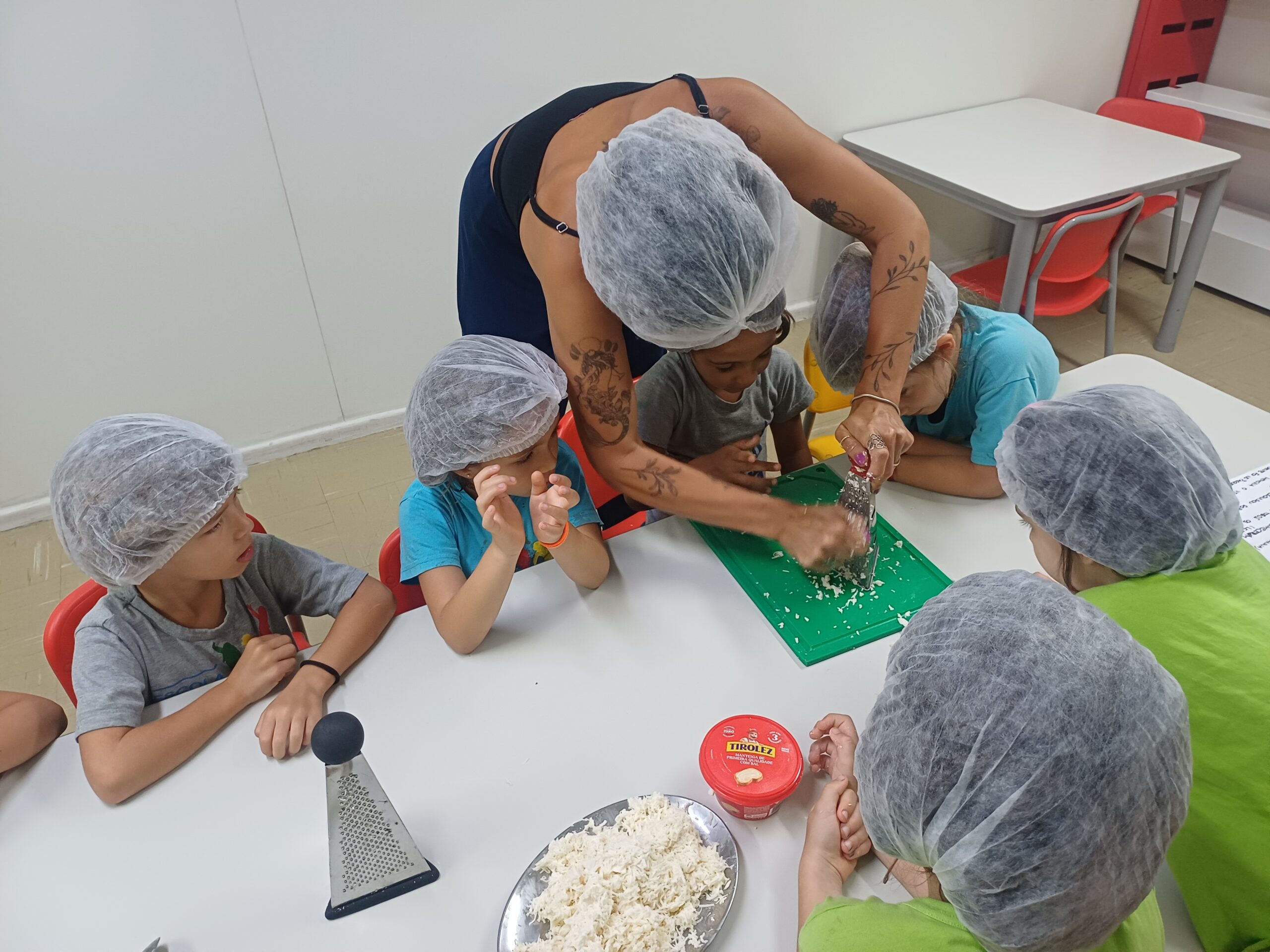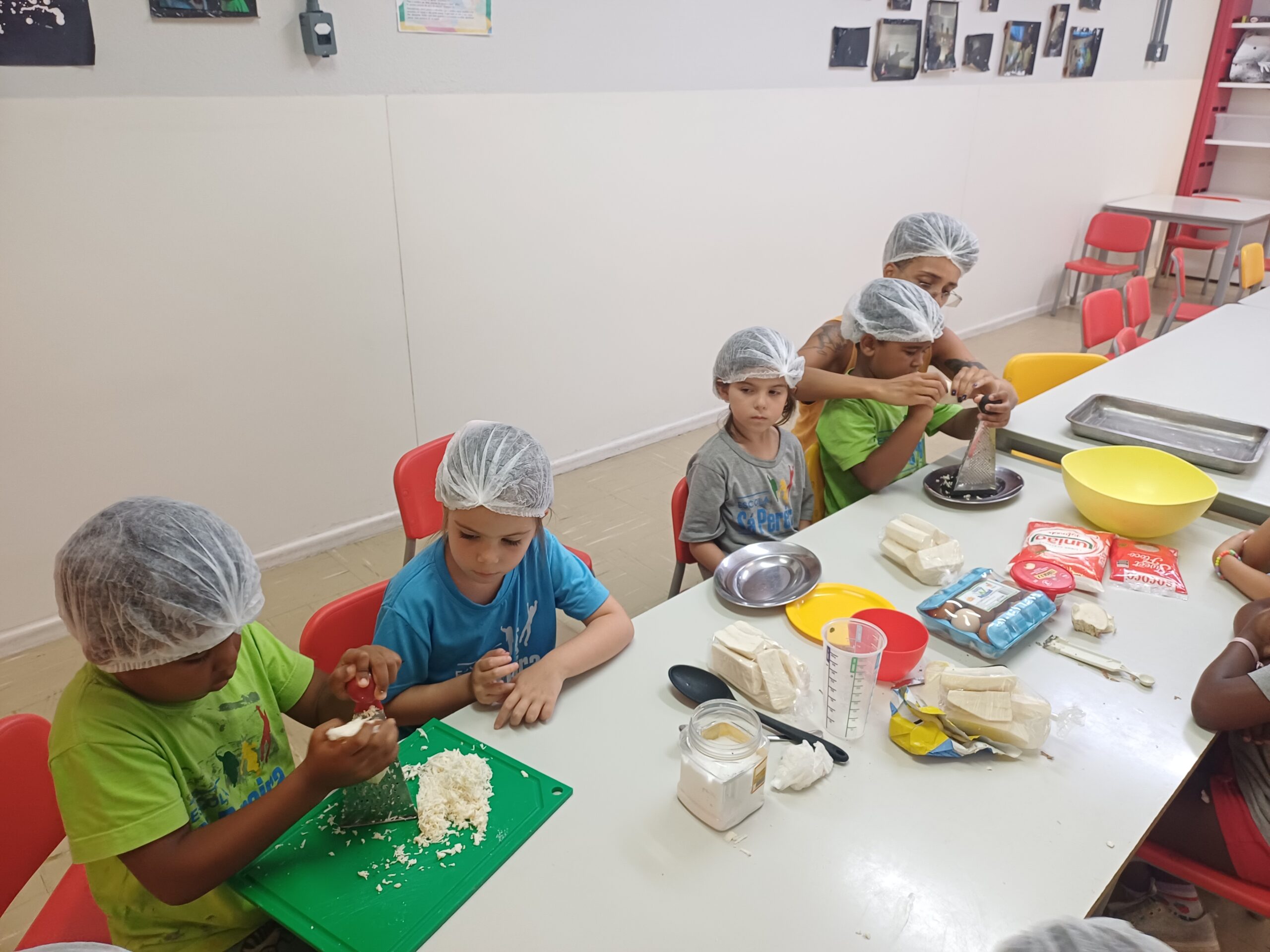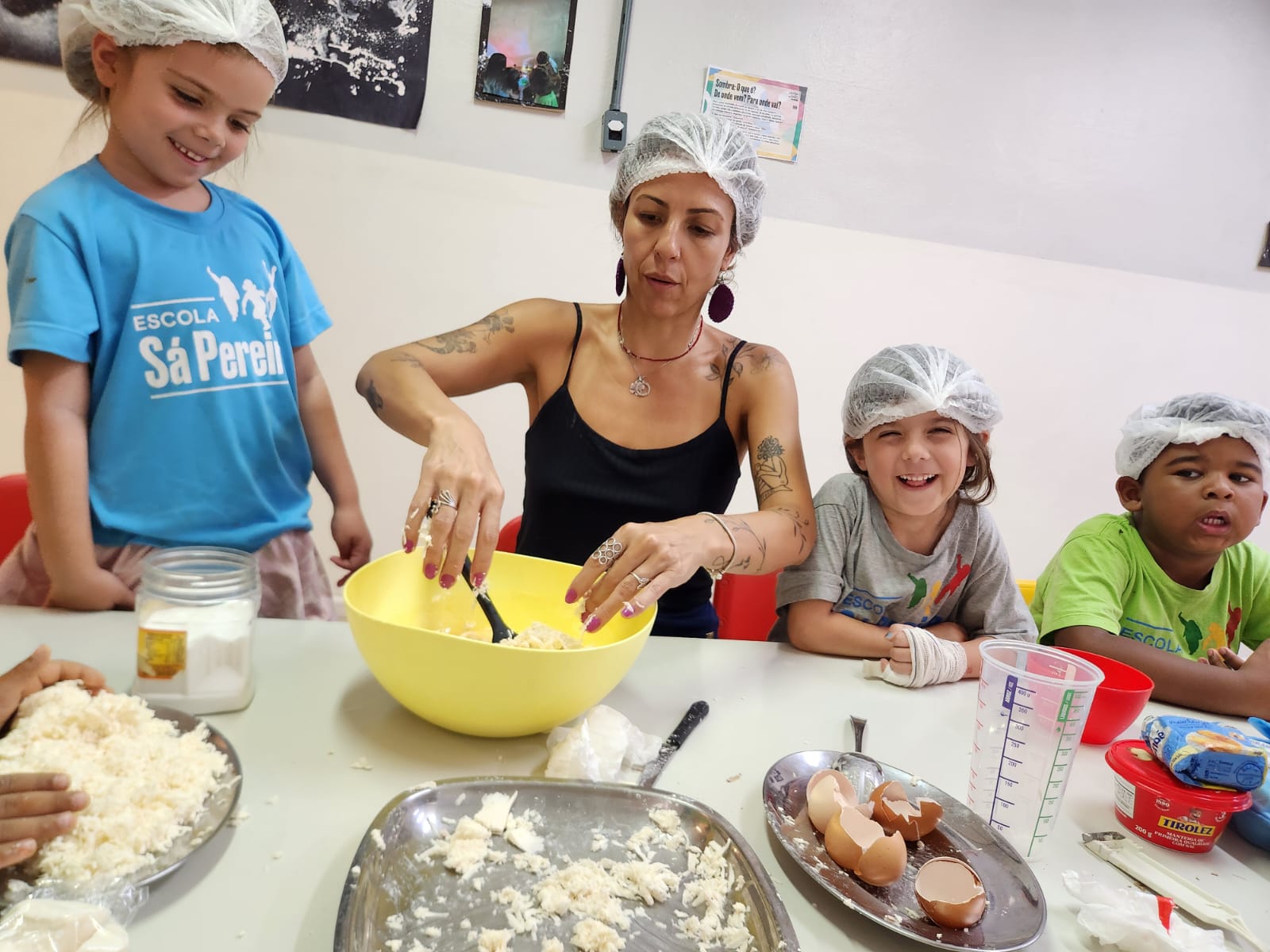 Para homenagear o grupo, preparamos uma deliciosa receita com um ingrediente que faz parte da dieta de muitos lares brasileiros: a mandioca. Conhecida por diversos nomes regionais, como maniva, macaxeira e o famoso aipim, representa um dos pilares da nossa cultura e com raízes profundas na história indígena. As crianças colocaram a mão na massa, atentas a cada ingrediente da receita. Assim, finalizamos nosso ciclo permeado de memórias, afetos e conquistas. Fim!