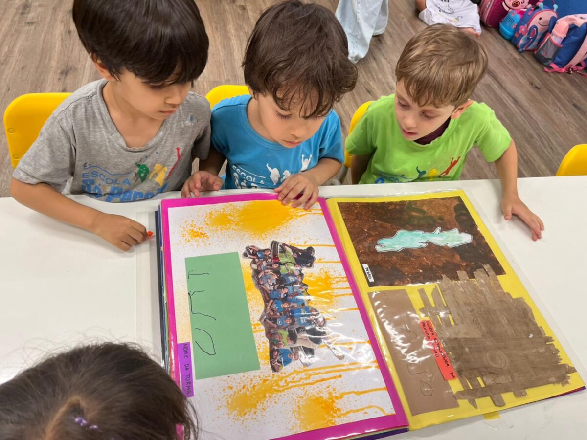 No segundo semestre, a turma embarcou em uma jornada usando o tema “Memória através da Literatura” para desvendar seus próprios tesouros. Com a ancestralidade como fio condutor, desbravaram suas histórias pessoais e familiares, reconhecendo a diversidade das raízes de cada criança.