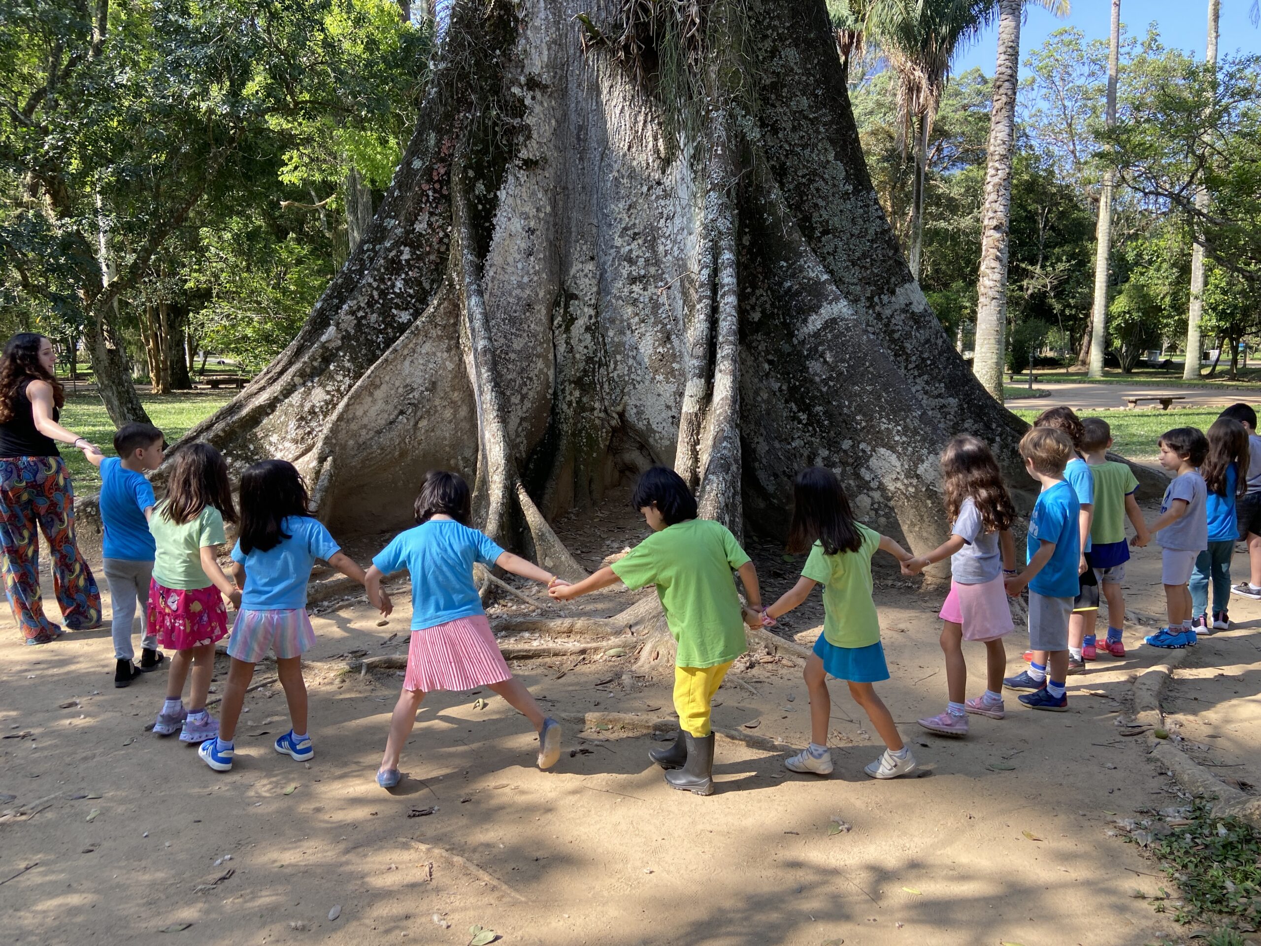 No segundo semestre, foi a vez de “Os dengos na moringa de Voinha”, de Ana Fátima, conduzir nossa experiência sensível. Conhecemos a moringa e seguimos até o Jardim Botânico, onde o baobá nos acolheu para encontros entre saberes e continentes.
