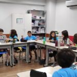 Nas aulas treinamos foco, concentração, controle corporal, noção de tempo, criatividade, fluxo de ideias, generosidade, escuta e tantas outras coisas.