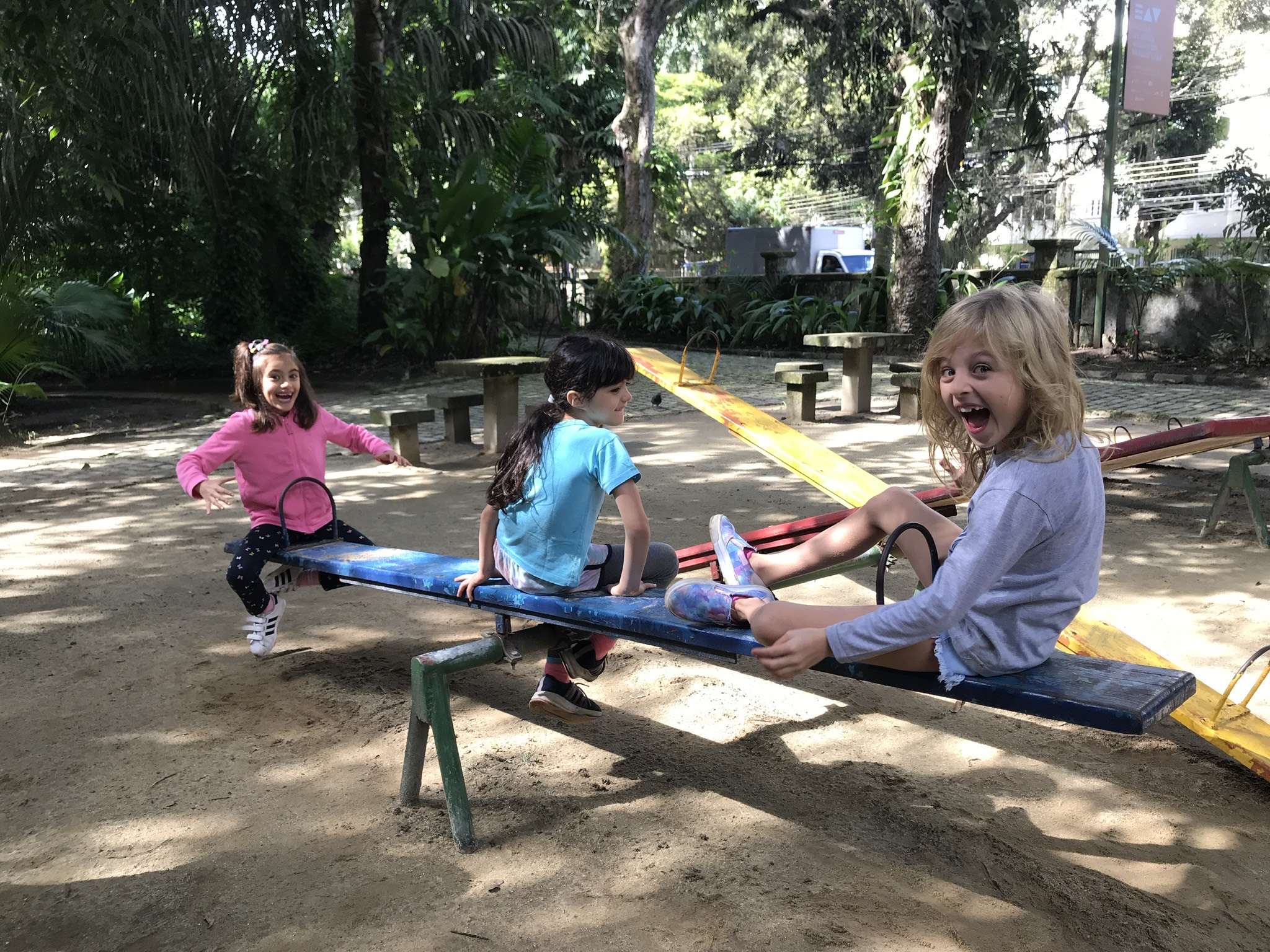 No Parque Lage brincamos no parquinho e nos divertimos! Com o Plínio fizemos trilha e plantamos muitas árvores.