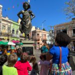 Vimos a estátua da Mercedes Baptista, a primeira bailarina negra do Theatro Municipal, e subimos a Pedra do Sal. Também vimos pinturas na parede do Heitor dos Prazeres, Tia Ciata, dona Ivone Lara e terminamos o passeio brincando de escorregar na pedra. Foi um dia importante e legal.