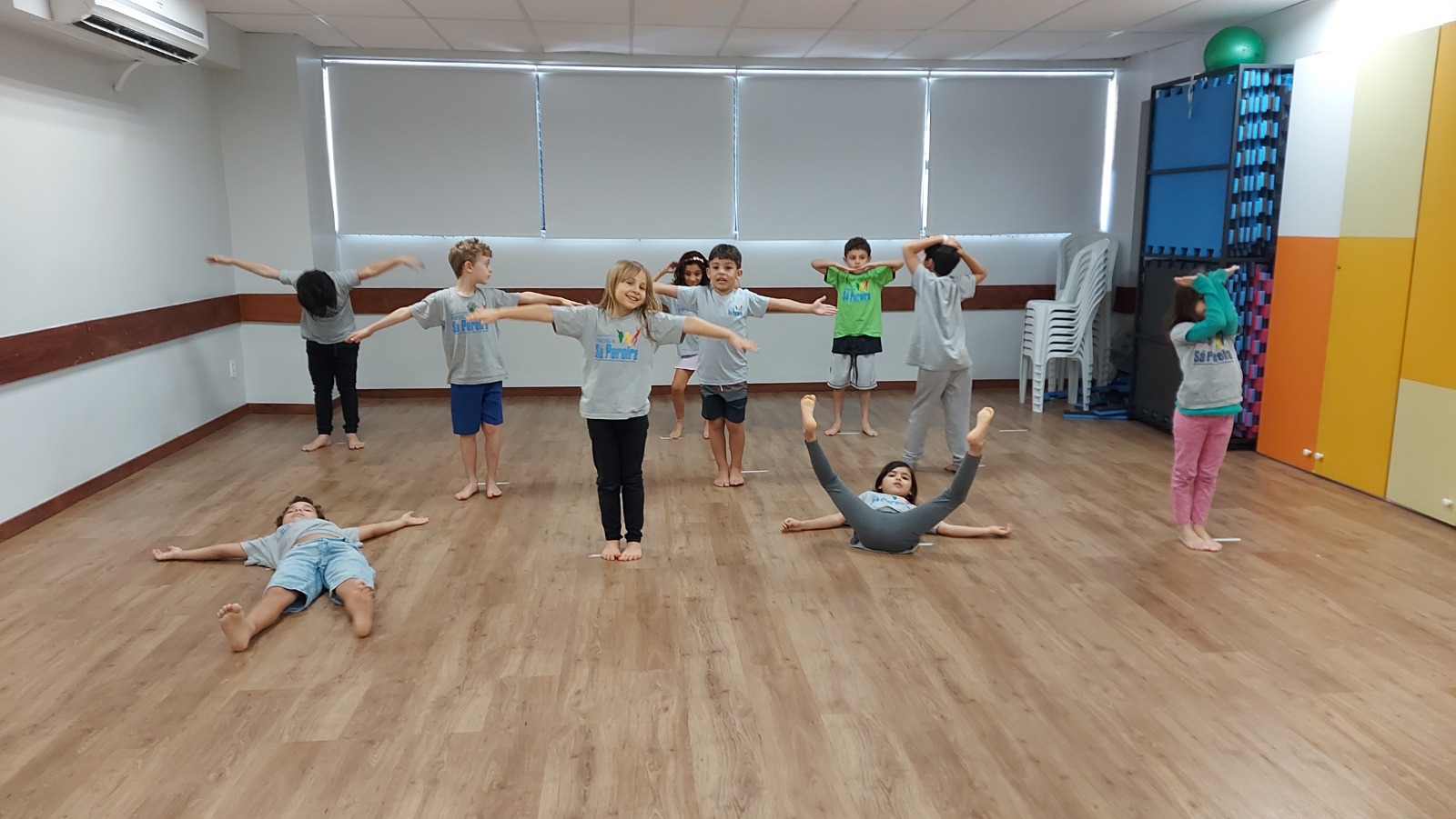 Nas aulas de Dança das F1, perguntamos se as crianças achavam possível escrever com o corpo. Alguns disseram logo que sim e deram exemplos.