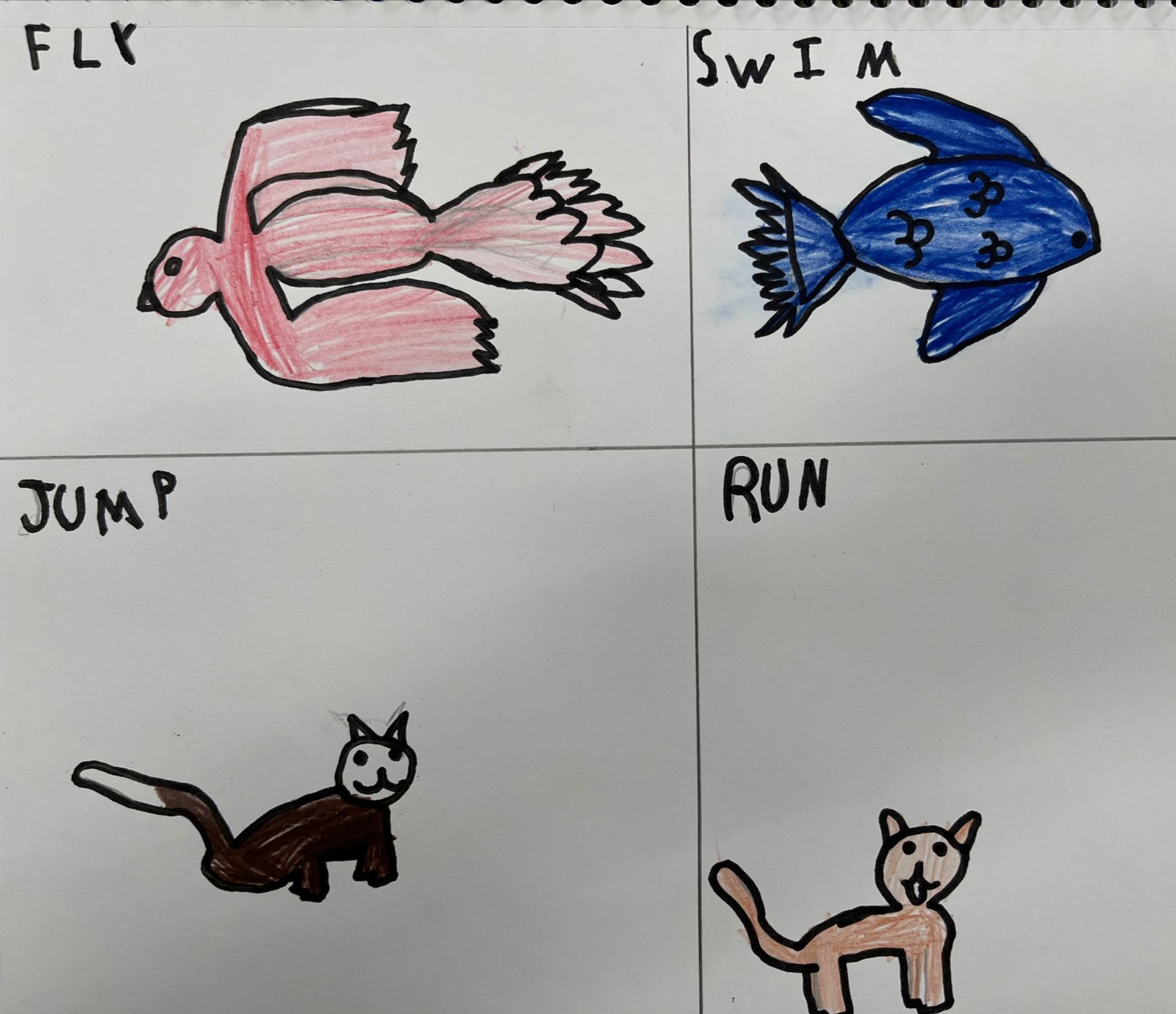 Como disparador, aproveitamos a volta do recesso para conversar em grupo sobre os animais que foram vistos durante o período fora da escola: “What animals did you see?”. Alguns comentaram sobre raposas e lhamas, outros mencionaram os bichos da fazenda. Mas como são seus nomes em inglês? Para enriquecer, trouxemos o livro Brown Bear, Brown Bear, What do you see?, de Eric Carle, apresentamos ilustrações de diversos animais, seus diferentes tamanhos e cores.