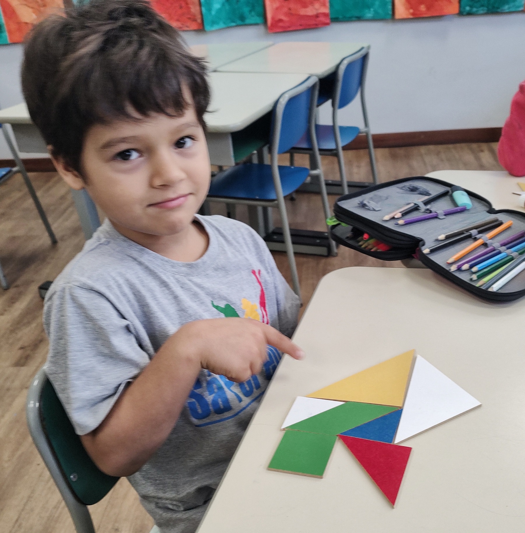 O que é o tangram? Instigadas, as crianças das F1 levantaram diversas hipóteses: