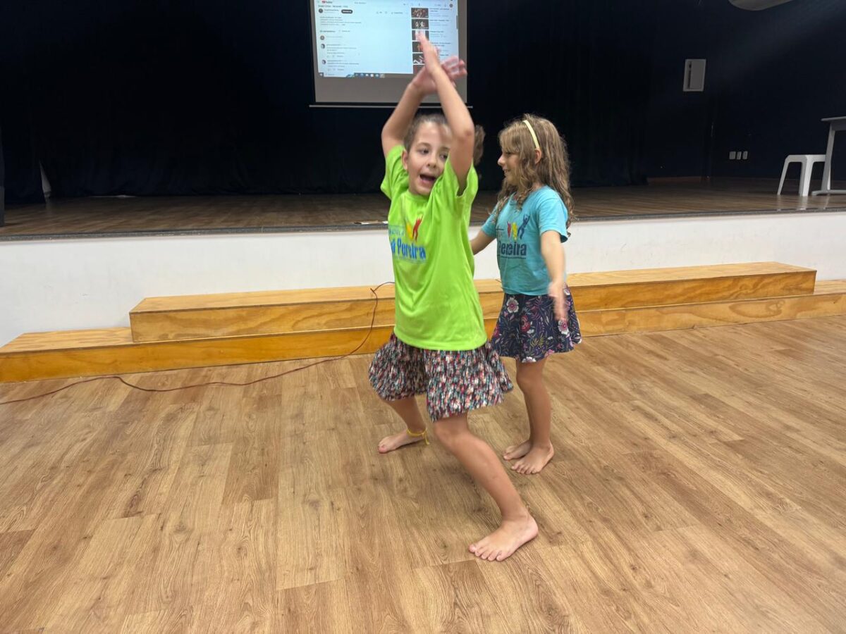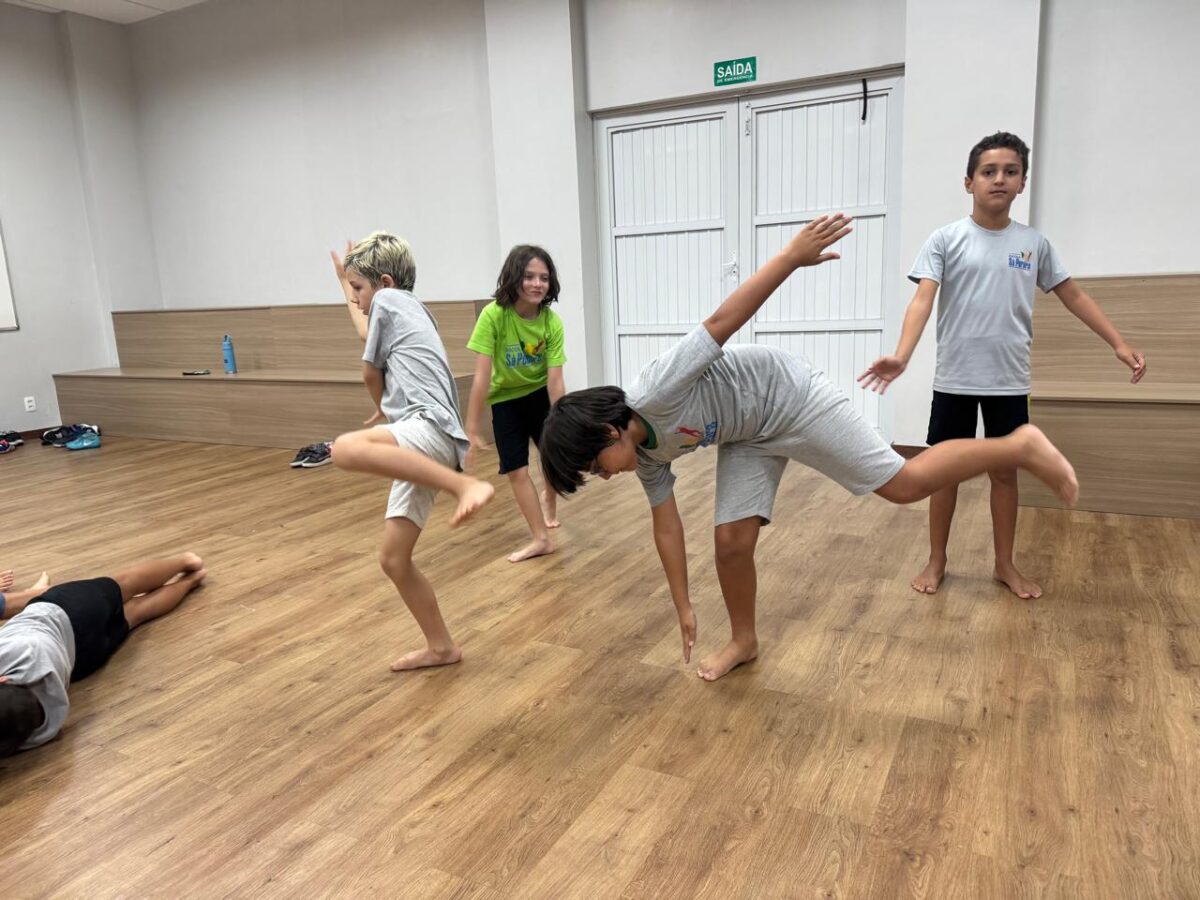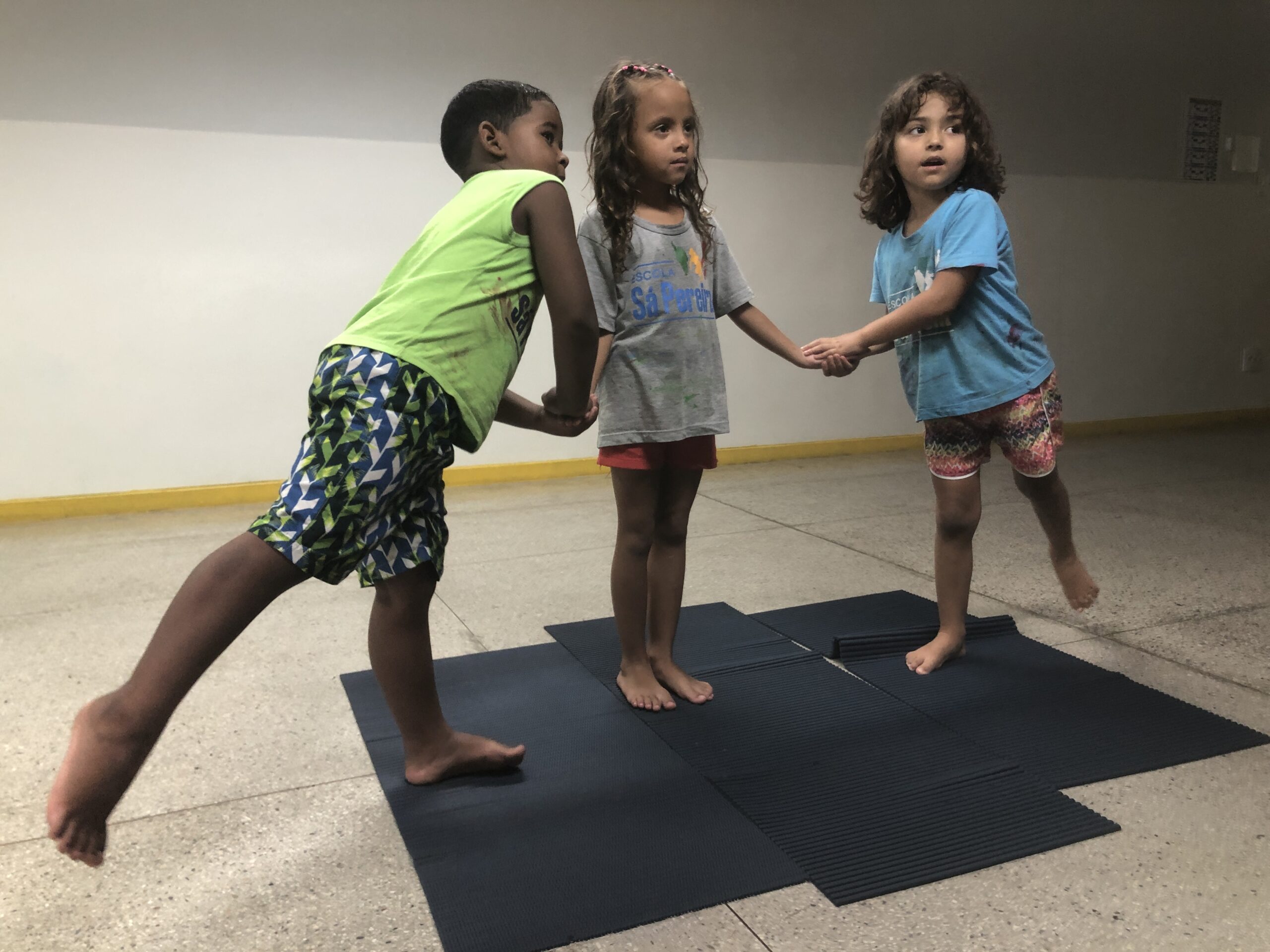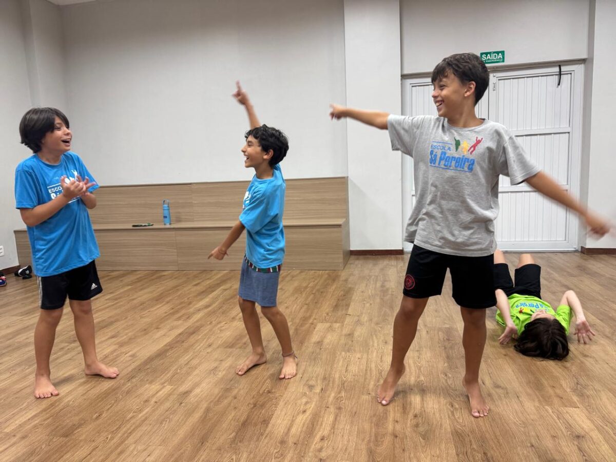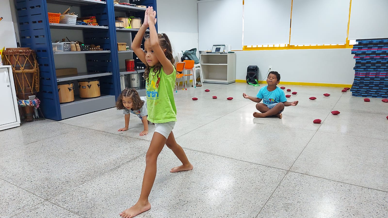 Brincadeiras como chuva de asteroides e estátua iogue têm feito a alegria das crianças nas nossas manhãs e tardes.