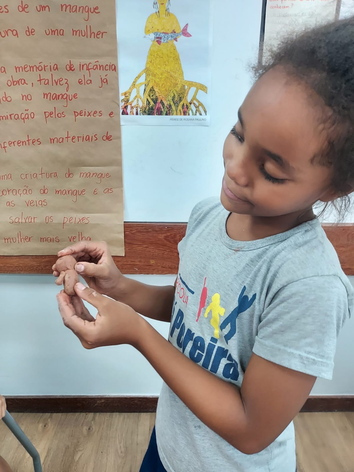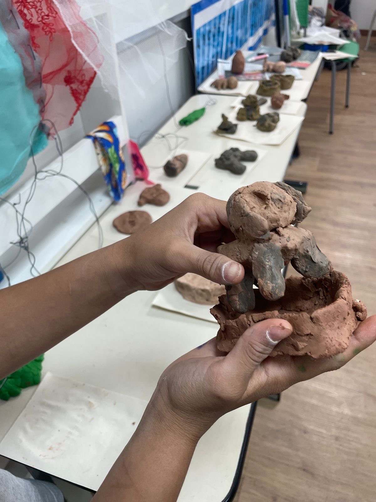 As F3 foram desafiadas a refletir sobre quais memórias gostariam de materializar por meio da arte, em uma atividade que uniu criatividade, expressão pessoal e trabalho manual. Para isso, tiveram a oportunidade de escolher entre três materiais: argila de diversas cores, arame flexível e tecidos com variadas texturas. Cada material foi selecionado para estimular a exploração de suas possibilidades e desafios, incentivando a experimentação e o pensamento crítico.