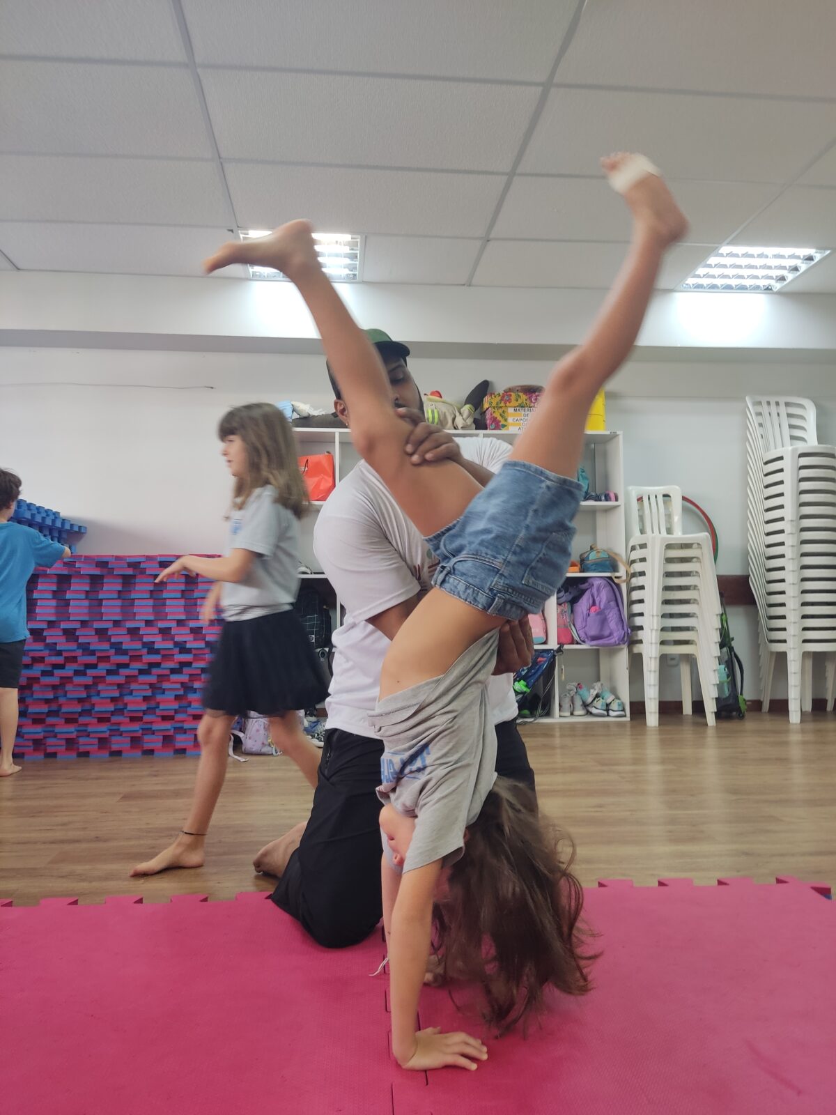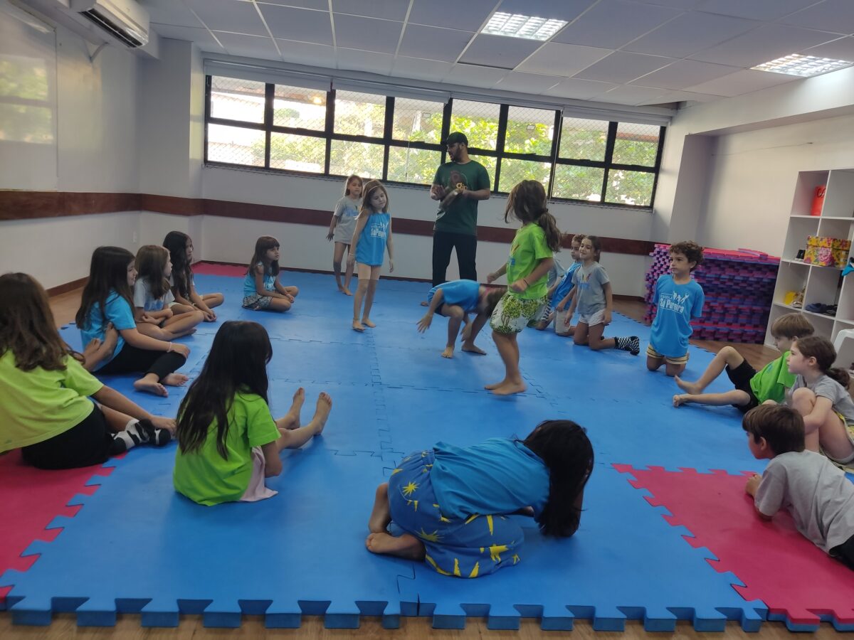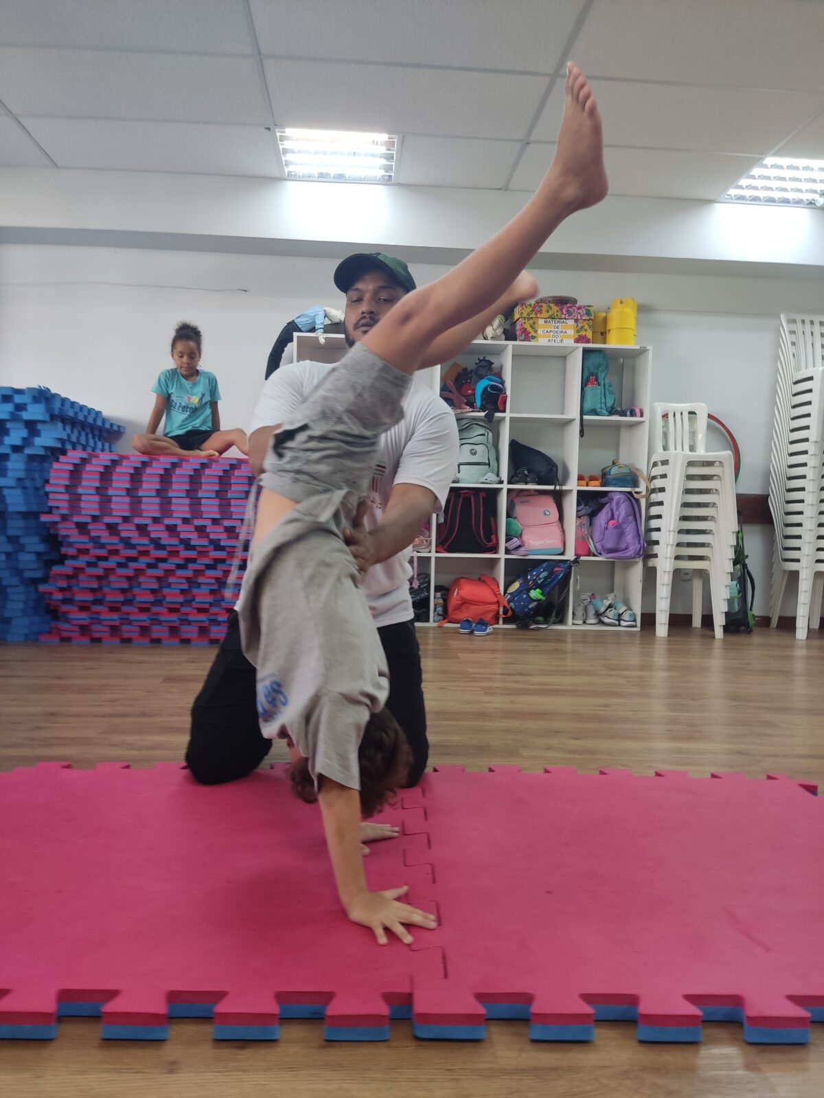 Com criatividade e atenção, elas exploraram movimentos da capoeira como a ginga, a meia-lua de frente, a cocorinha, o aú e o rolê. Cada gesto é uma expressão de corpo inteiro, uma dança que mistura jogo, arte e tradição.