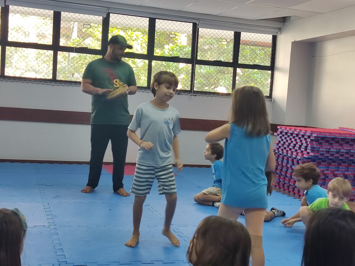 O som vibrante do pandeiro tem marcado o ritmo das aulas de Capoeira, trazendo alegria e conexão com a rica cultura afro-brasileira. As crianças não só ouviram, mas também experimentaram tocar o instrumento, vivenciando momentos de muitas descobertas.