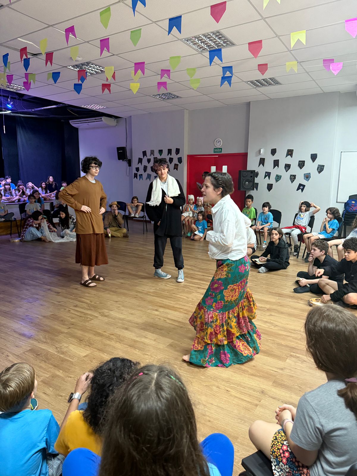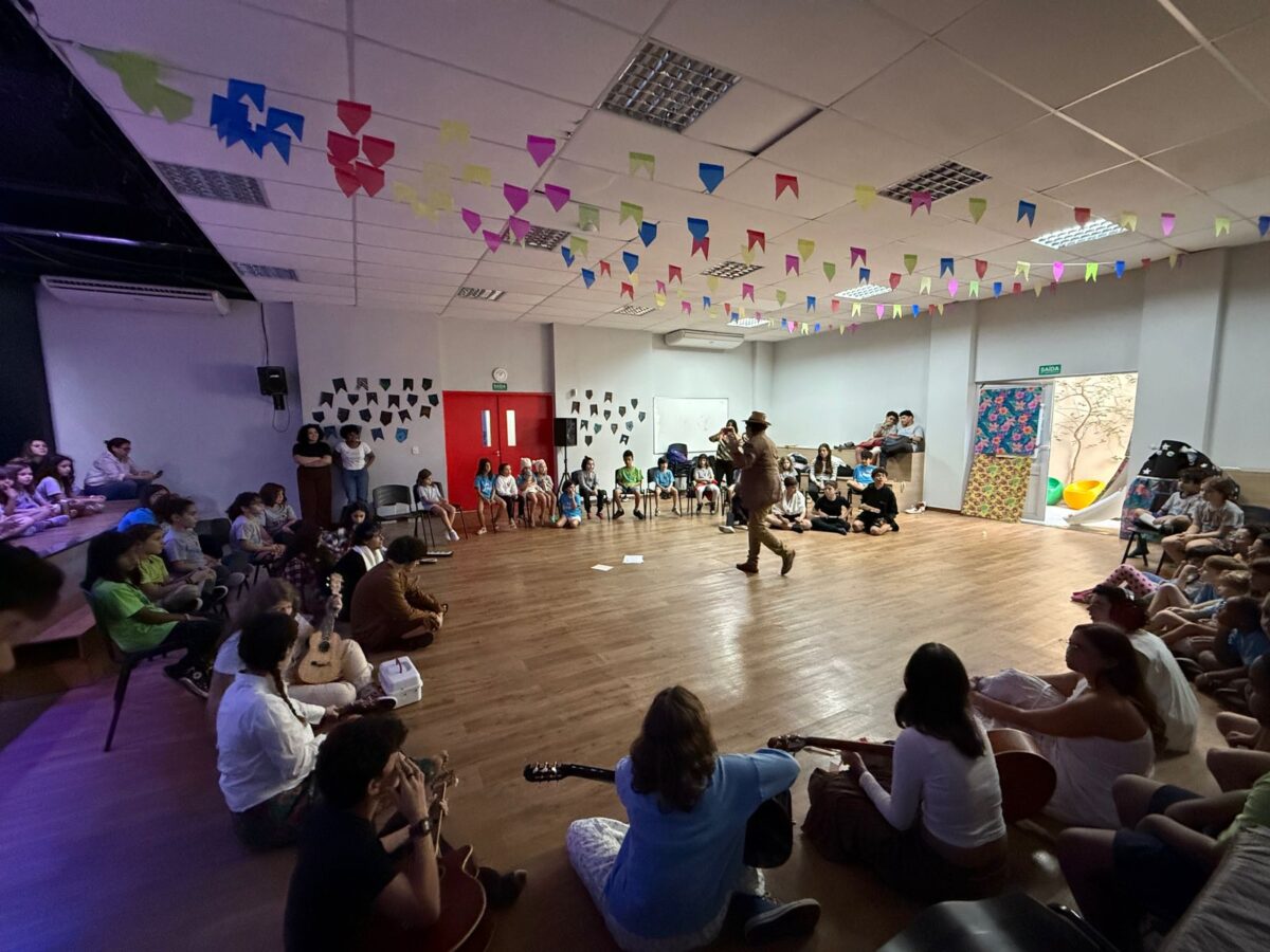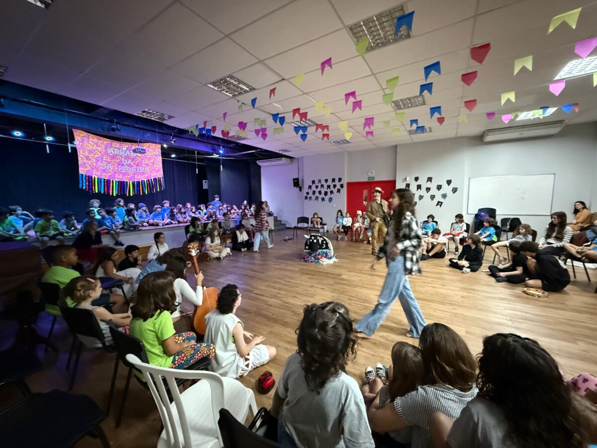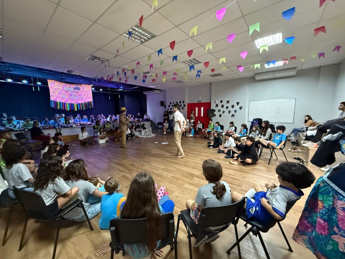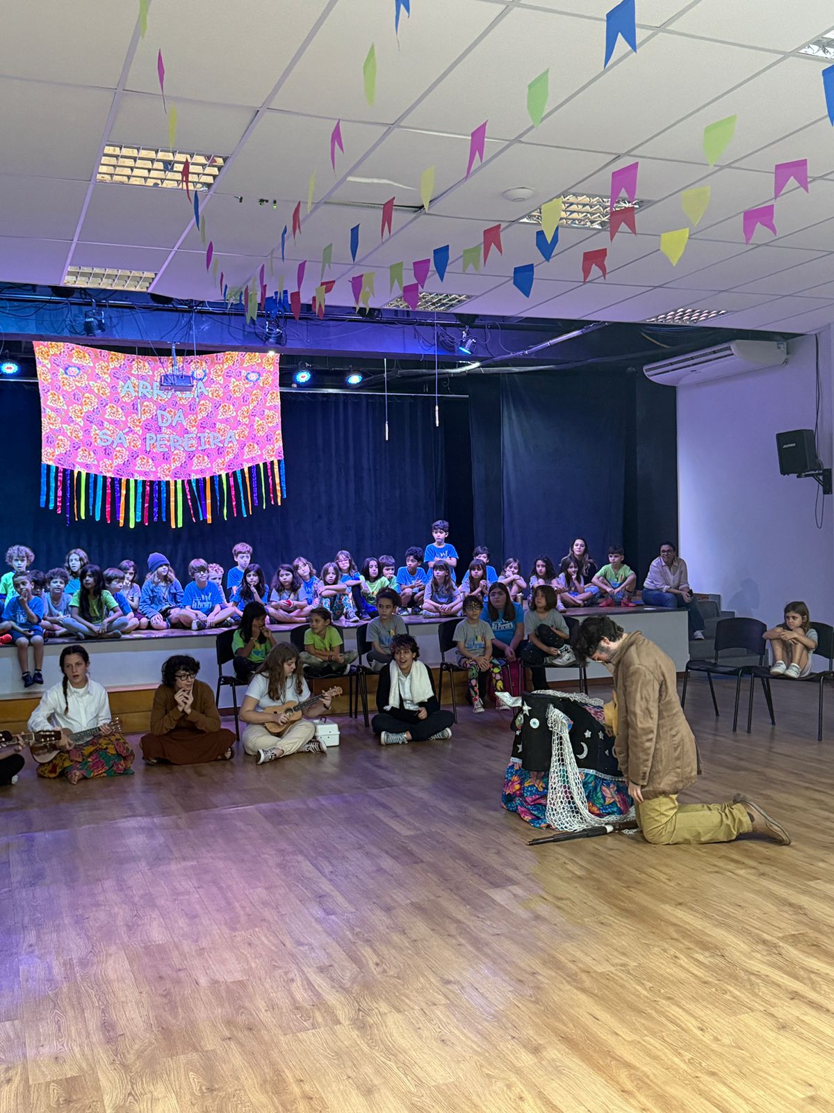 Mais do que uma apresentação, esse momento foi uma potente troca entre segmentos. Nas aulas seguintes, as turmas do segundo ano começaram a pesquisar sobre o Maranhão e a tradição do bumba-meu-boi, inspiradas pelo espetáculo. Escreveram textos para os colegas do oitavo ano, que responderam com áudios — uma troca que ultrapassou os limites do palco e seguiu viva nas salas de aula.