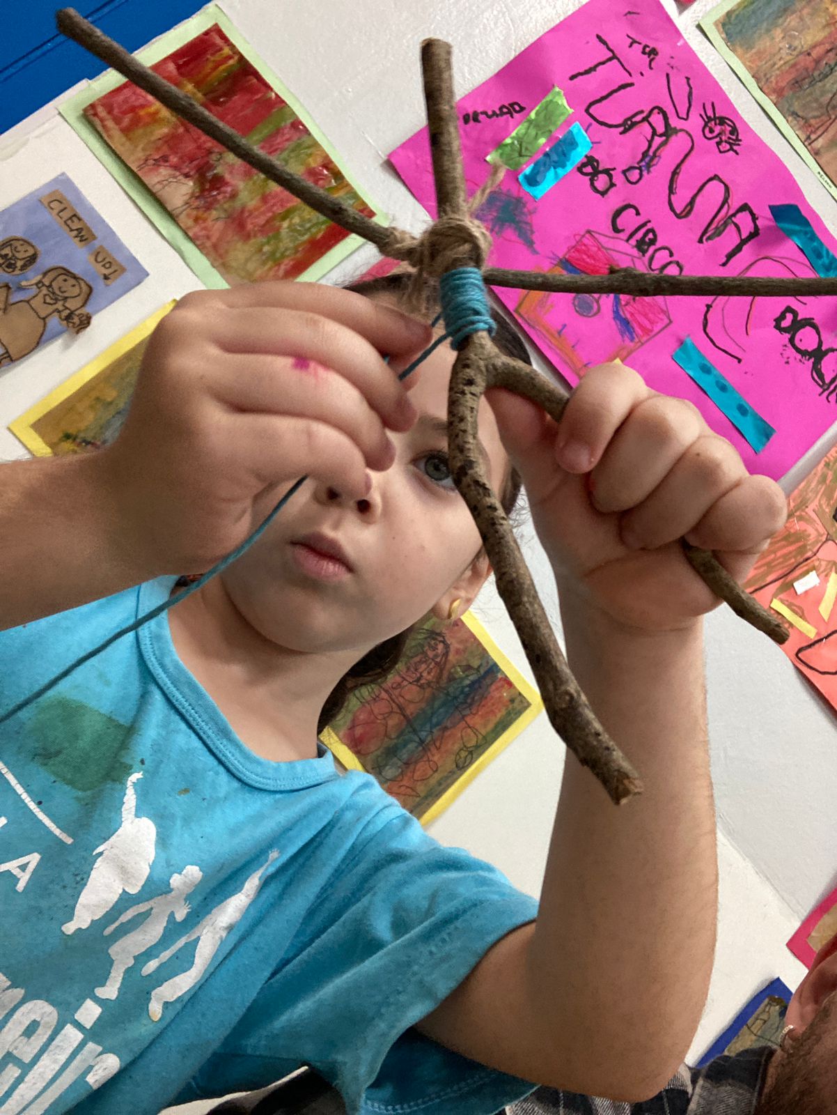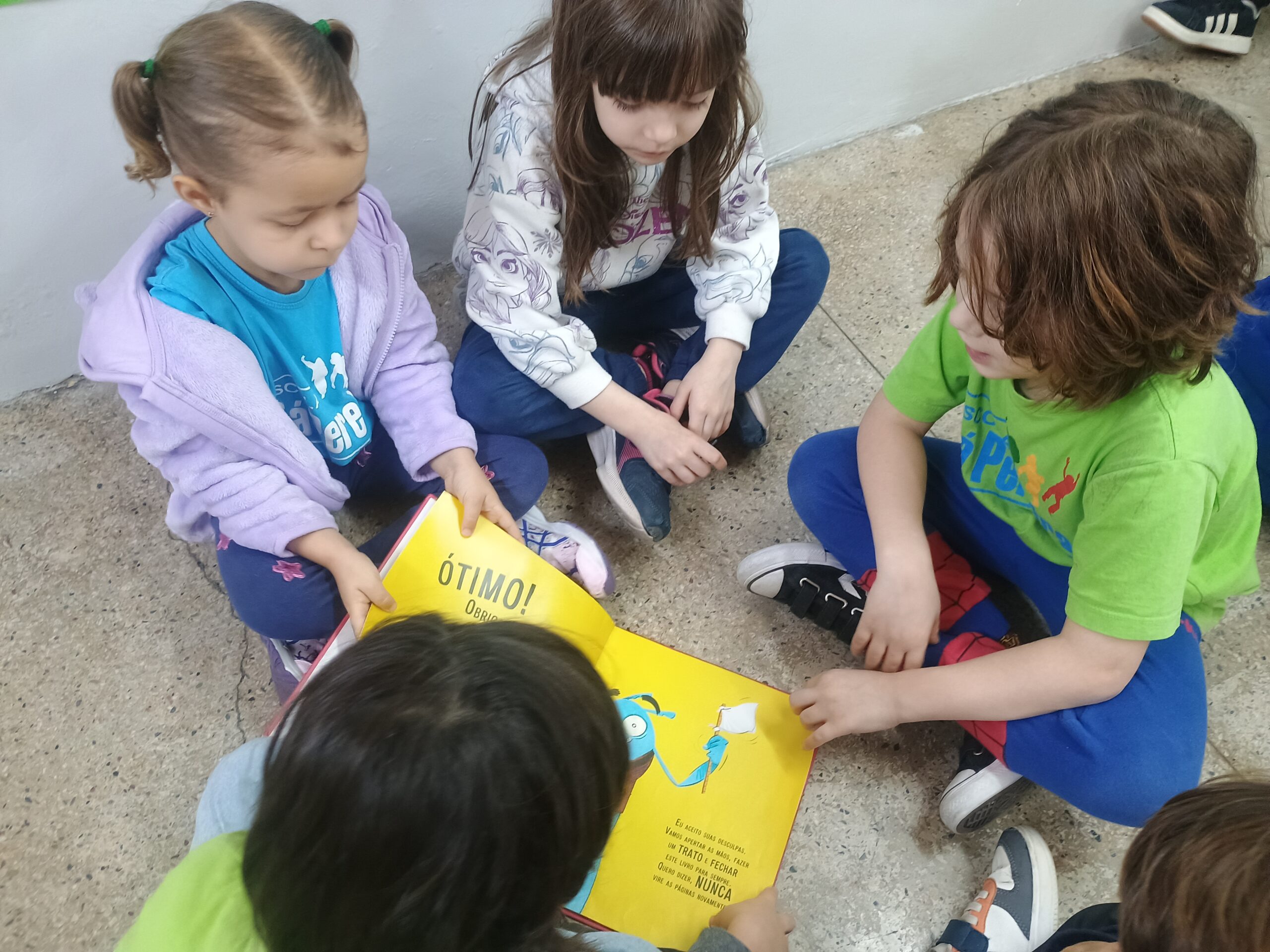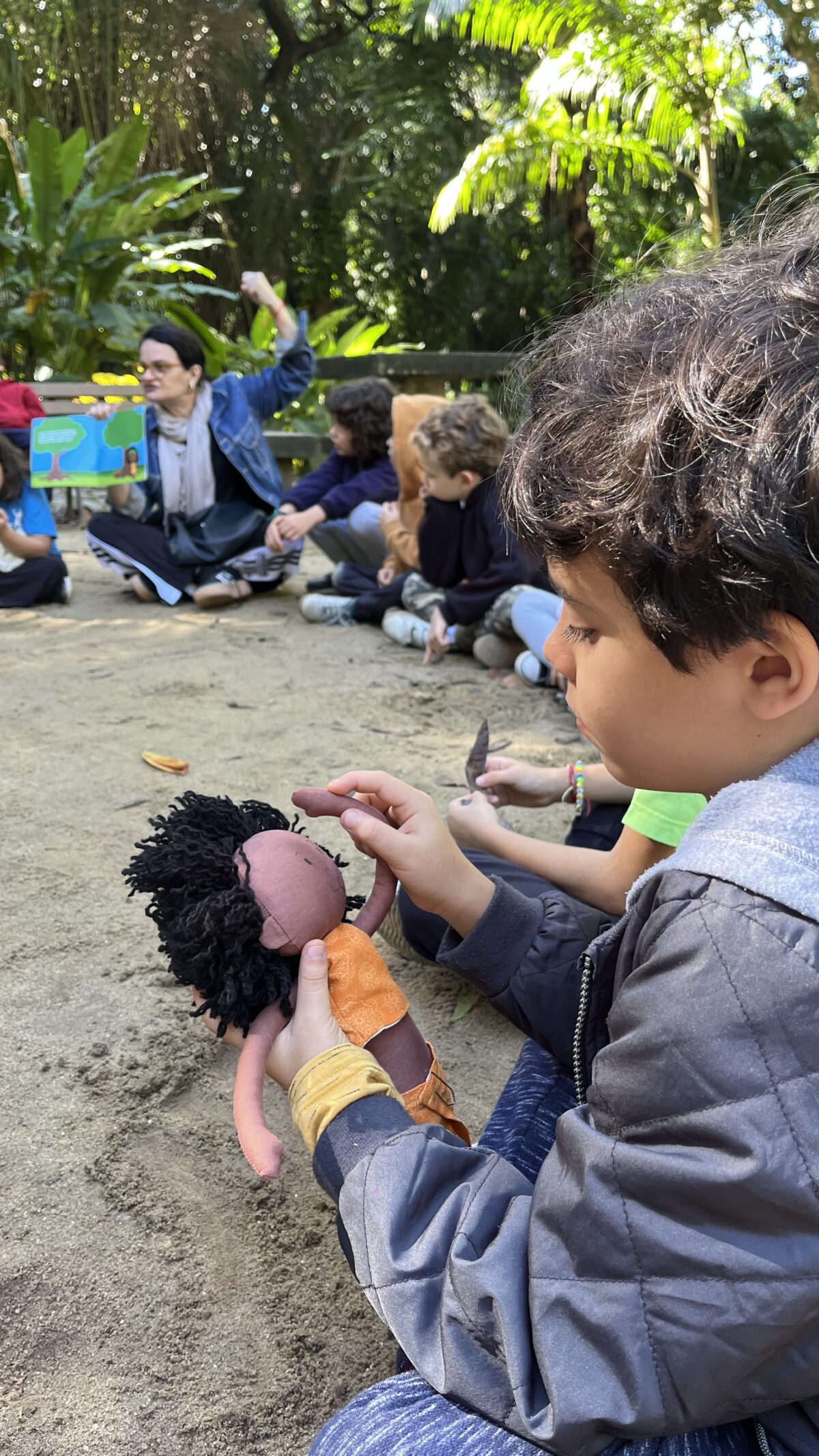 O Rei que adorava música, de Ana Carolina Badaró, nos trouxe algumas inquietações sobre os mitos e lendas das montanhas do Rio de Janeiro. Conhecemos o Piraiaguara, que, apaixonado pelo “Gigante adormecido”, nos sensibilizou a cuidar da poluição da Baía de Guanabara, coletando sucatas. Depois, tivemos uma ideia para construir esculturas e, junto ao Ateliê da EI, projetamos suas sombras e descobrimos figuras bem diferentes. Getúlio, artista de Santa Tereza, nos encantou com suas obras! Estamos preparando uma surpresa para a Mostra de Artes. Outra pesquisa foi sobre os livros, e Não abra este livro, de Andy Lee, foi eleito o favorito do grupo. O envolvimento foi tamanho que produzimos nossos livros de dobradura e recentemente confeccionamos os cordéis inspirados nas canções juninas.
