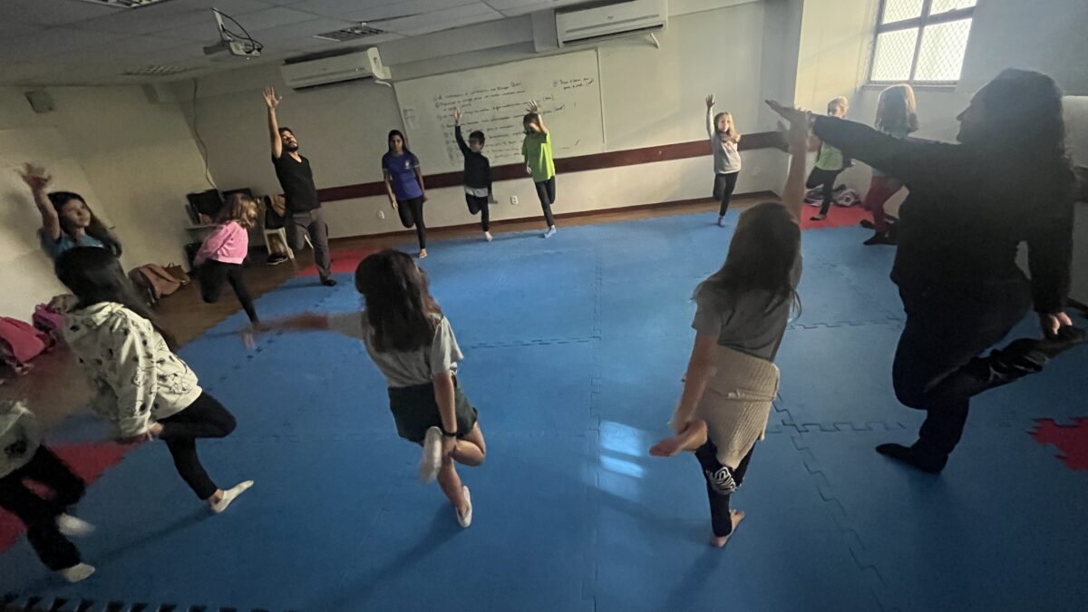 Com o repertório musical em mãos, exploramos os ritmos do Coco, Boi, Forró, Ciranda, Jongo, Maracatu e seus passos básicos.