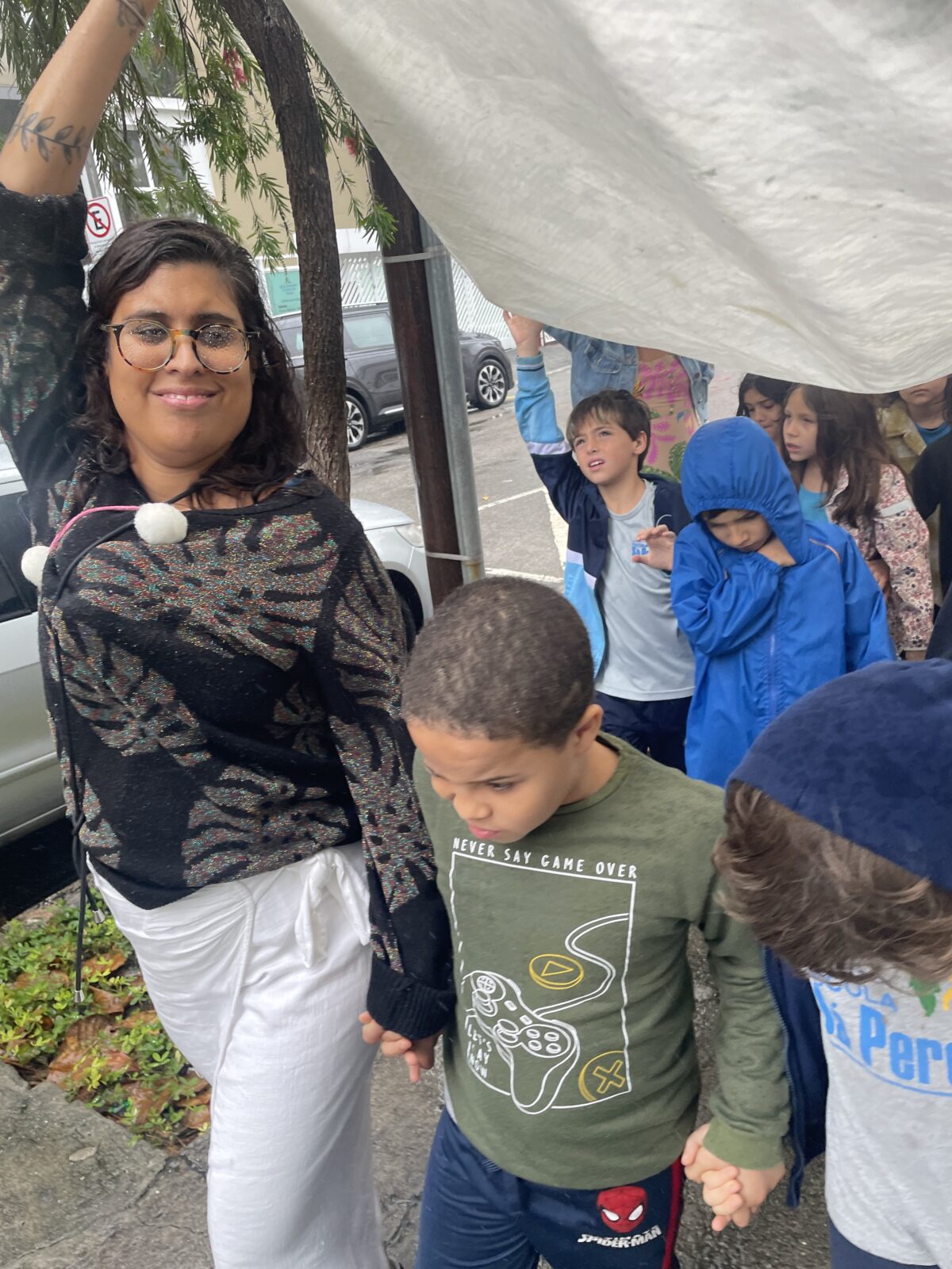 As crianças foram recebidas por Clarice Magalhães, idealizadora do projeto, que apresentou para as turmas todo o espaço e o acervo. Conheceram pandeiristas que foram homenageados através de fotografias e outras obras que ajudam a contar a  história do instrumento, sua chegada ao Brasil e sua importância na música brasileira. Viram a diferença entre o pandeiro de couro e o de nylon, experimentaram tocá-los e assistiram a vídeos de artistas tocando diferentes ritmos no pandeiro.