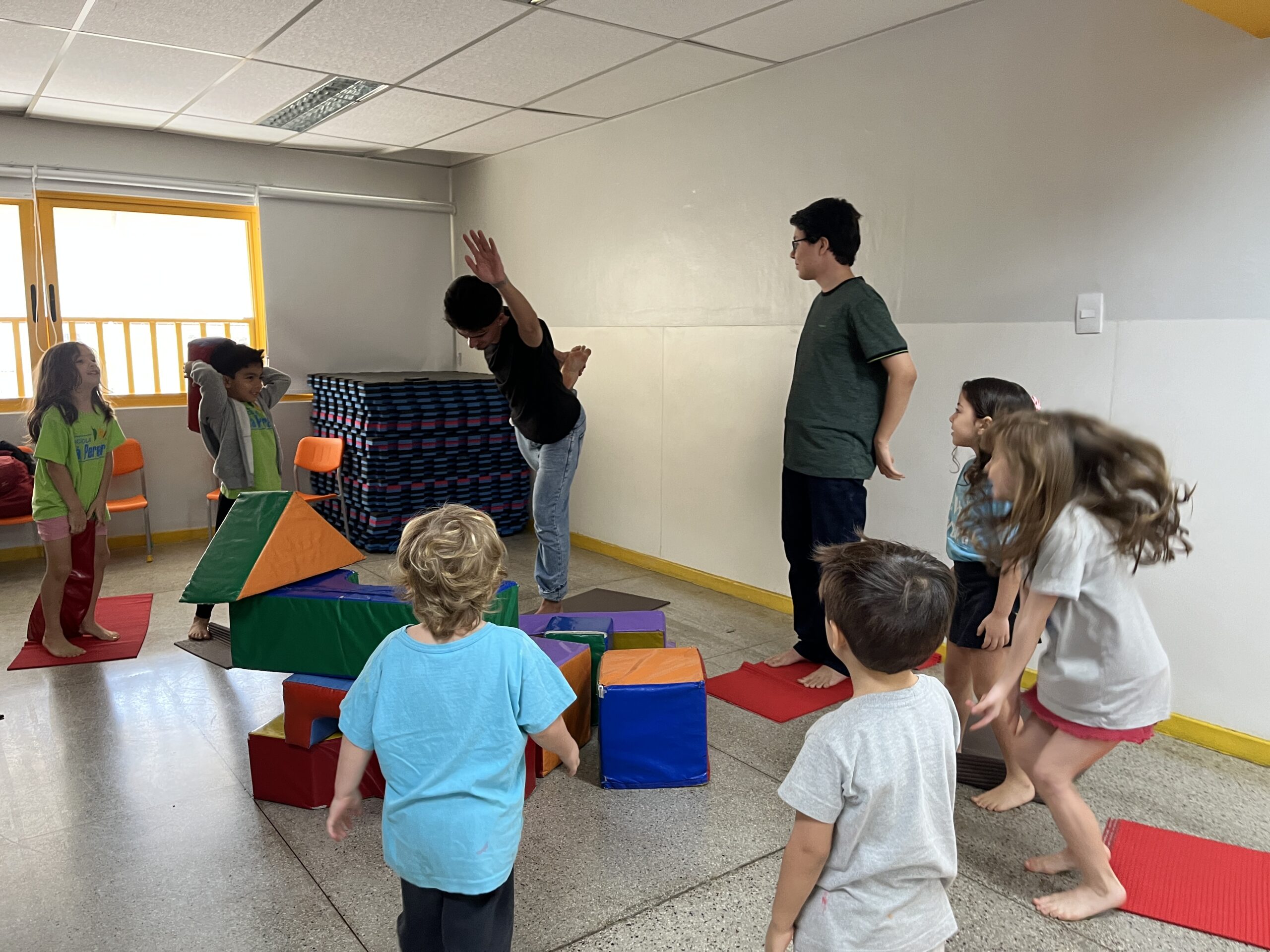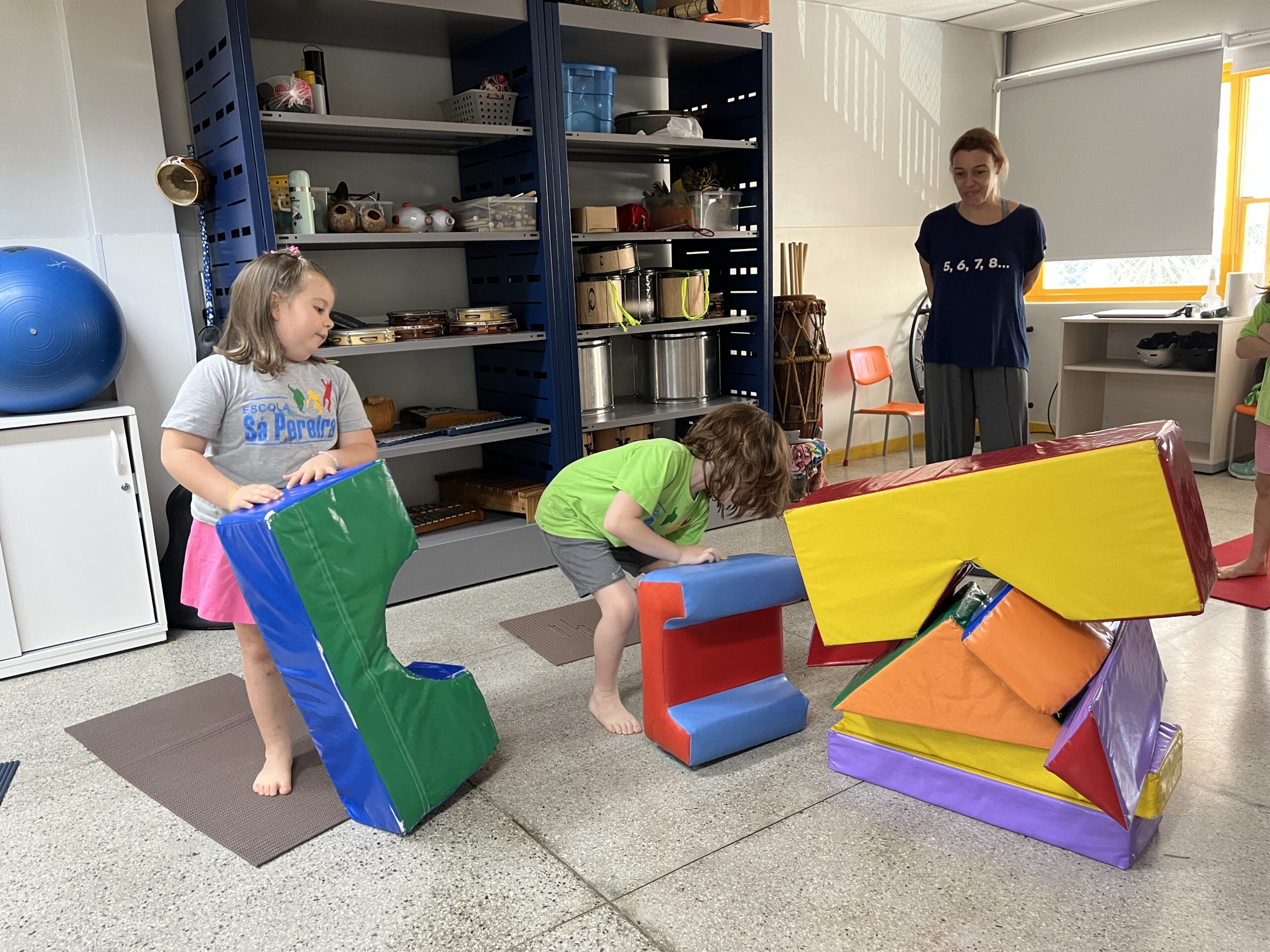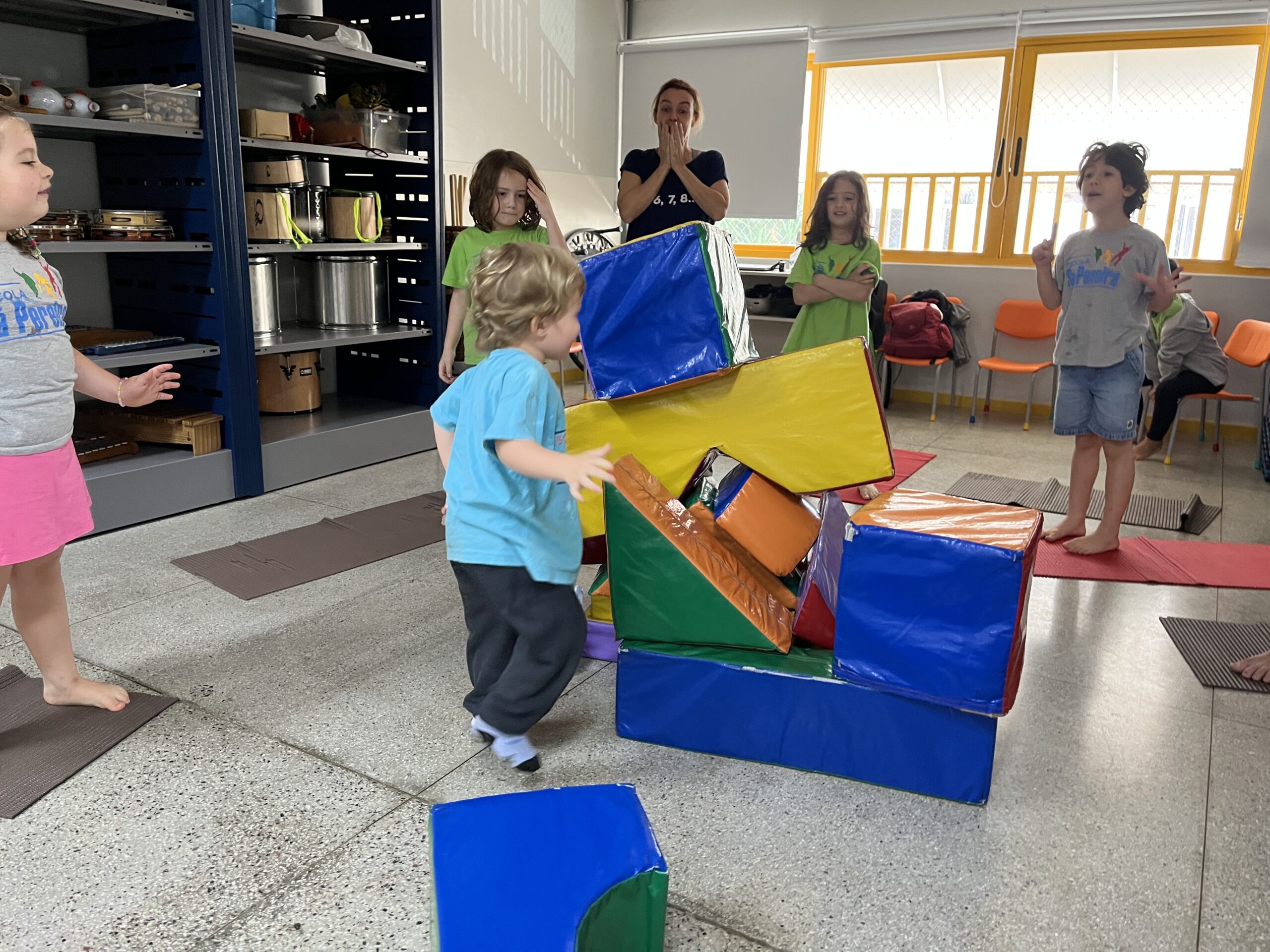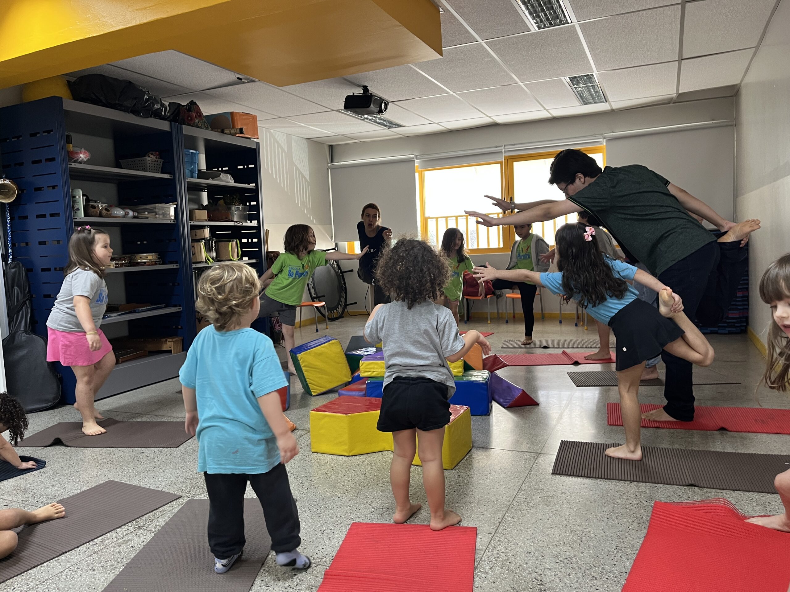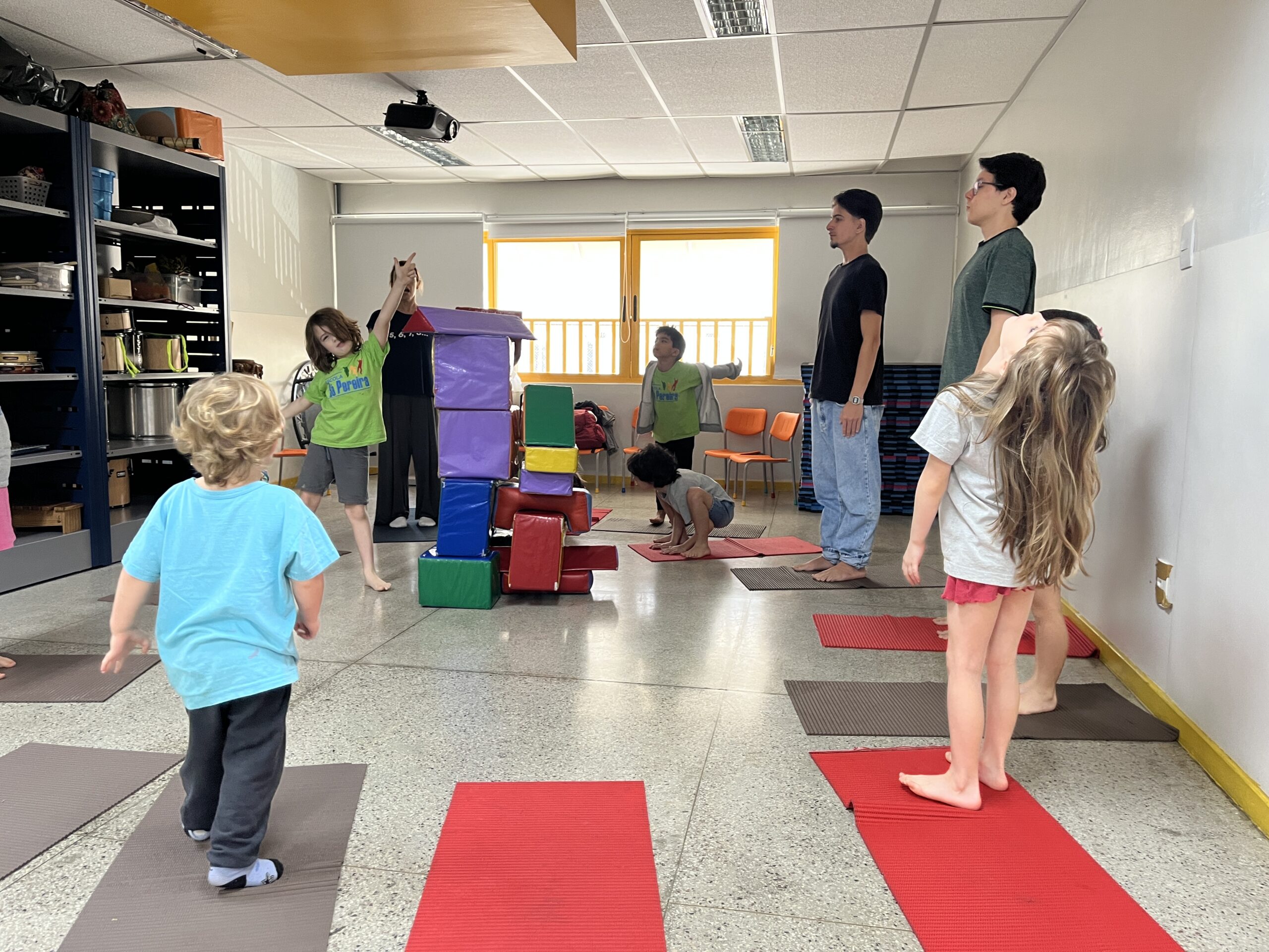 Nas aulas de Ioga, as crianças aprenderam uma nova brincadeira.