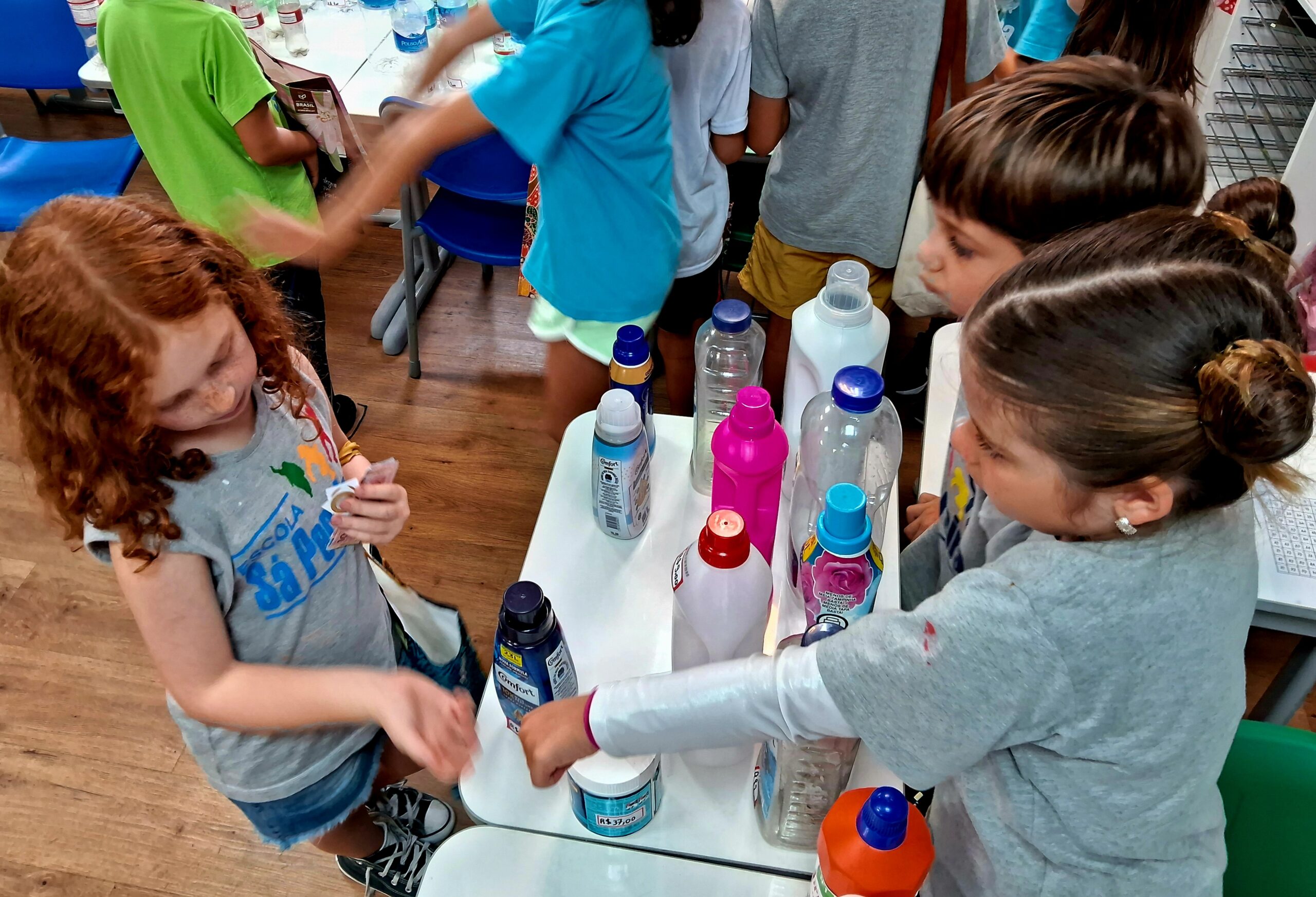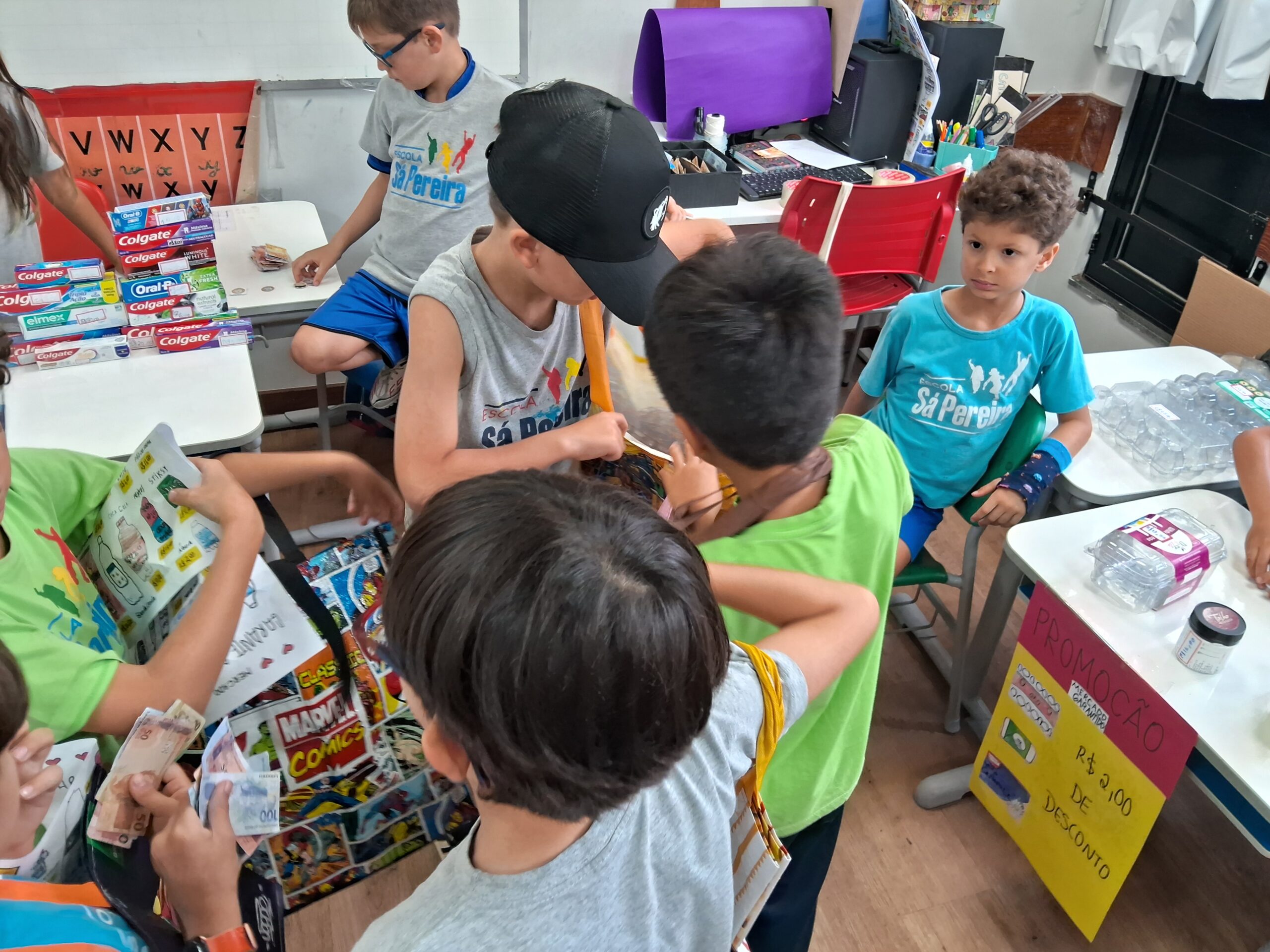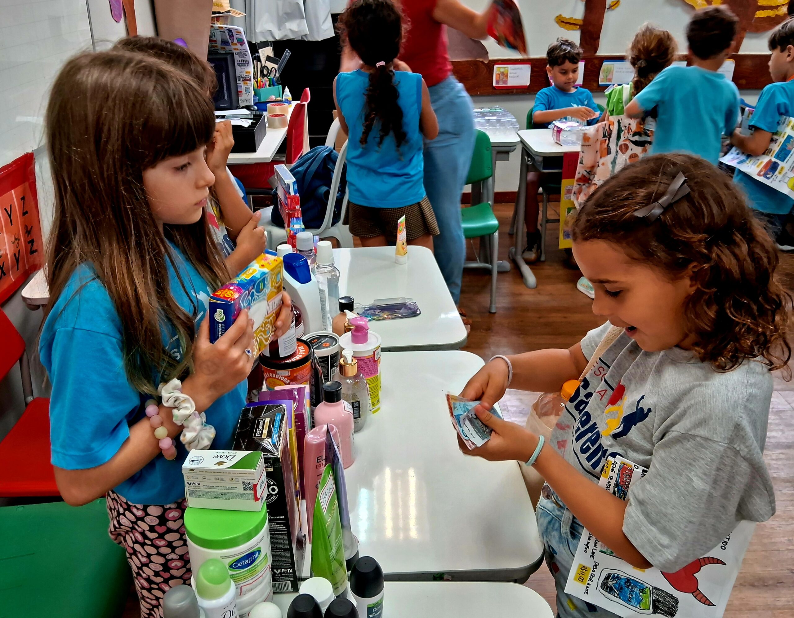 Com o dinheirinho em mãos, circularam pelas sessões, atentos aos valores, ao troco e fazendo as combinações necessárias para formar o preço de cada mercadoria.