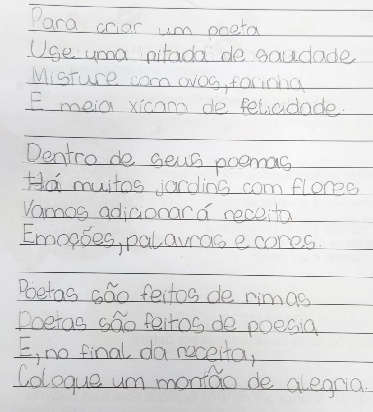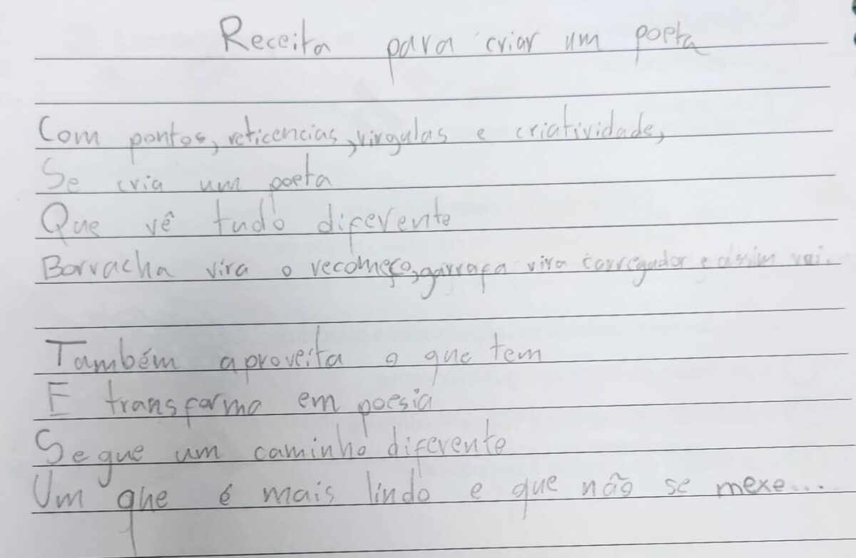 O resultado foram receitas repletas de sensibilidade, humor e criatividade, que revelaram o olhar das crianças sobre a poesia e sobre o que significa criar com intenção e imaginação.