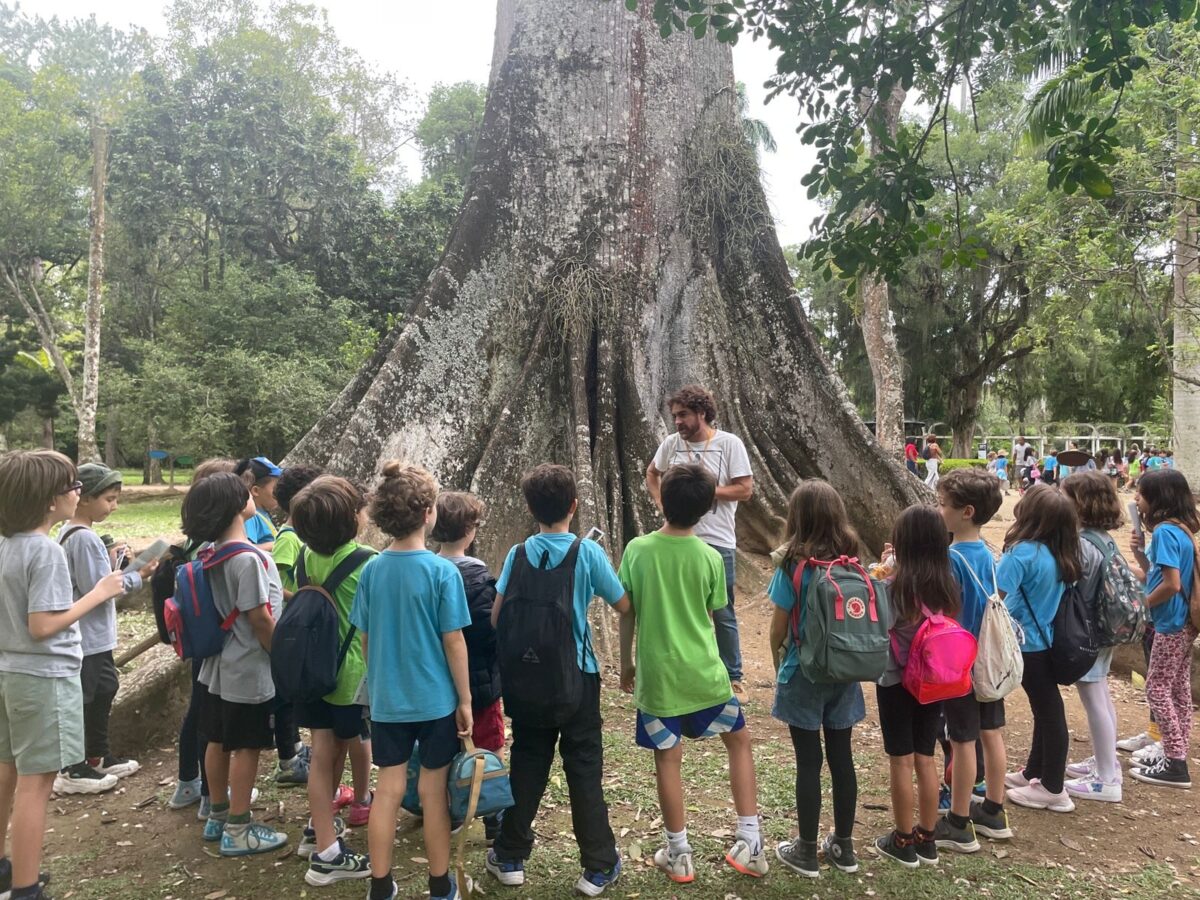 Fizemos também uma trilha no Parque Lage, com o apoio do Plínio, do ICMBio, onde pudemos observar a natureza de perto e viver novas aventuras. Além disso, nos divertimos com futebol, corda, bolinha de gude e diversas brincadeiras ao ar livre, explorando os elementos naturais ao nosso redor. Aprendemos muito sobre a natureza!