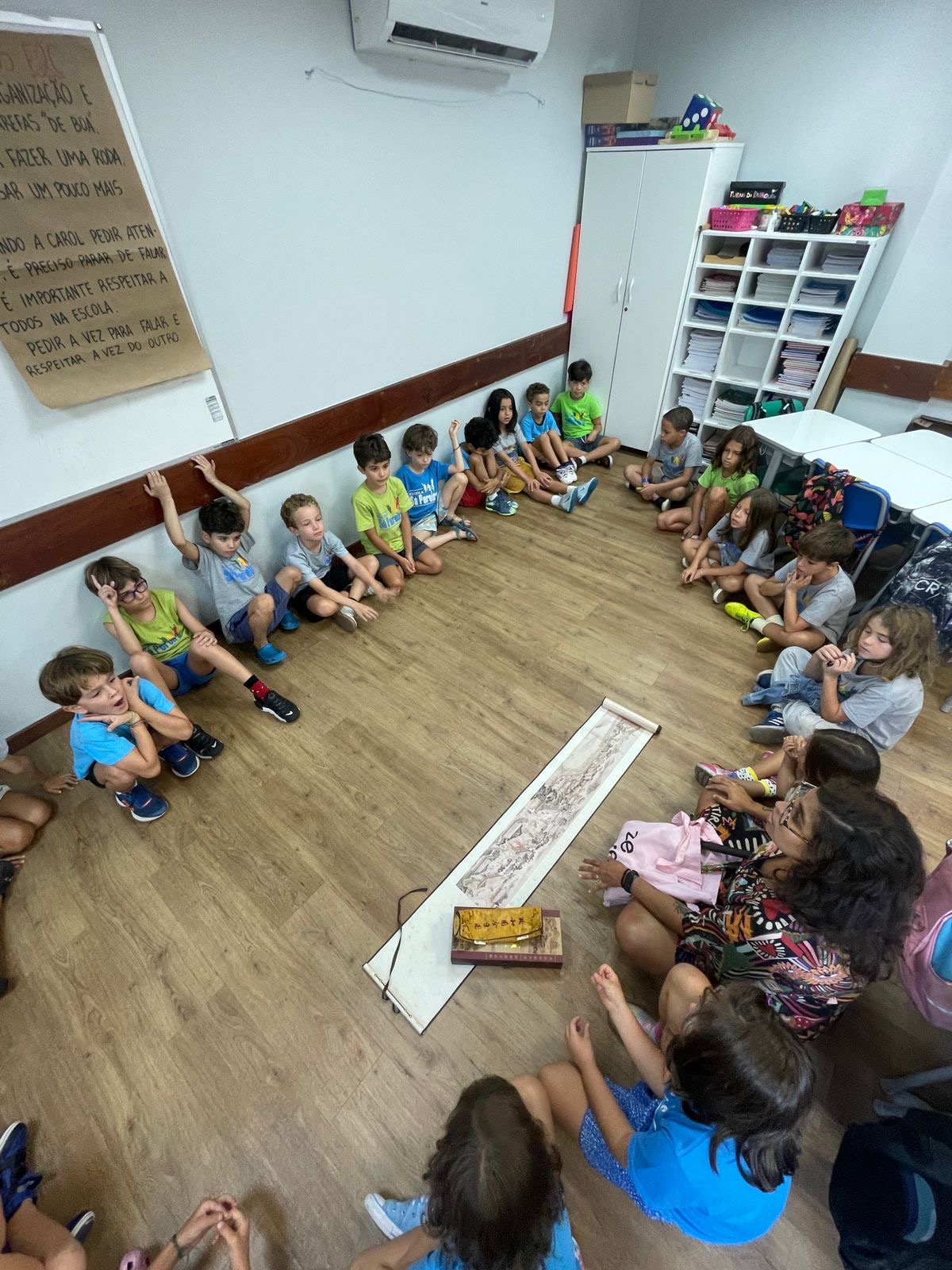 A proposta marcou a conclusão do trabalho com poesia, um gênero que acompanhou as crianças ao longo de todo o ano e dialogou diretamente com a peça de teatro da Festa de Fim de Ano.