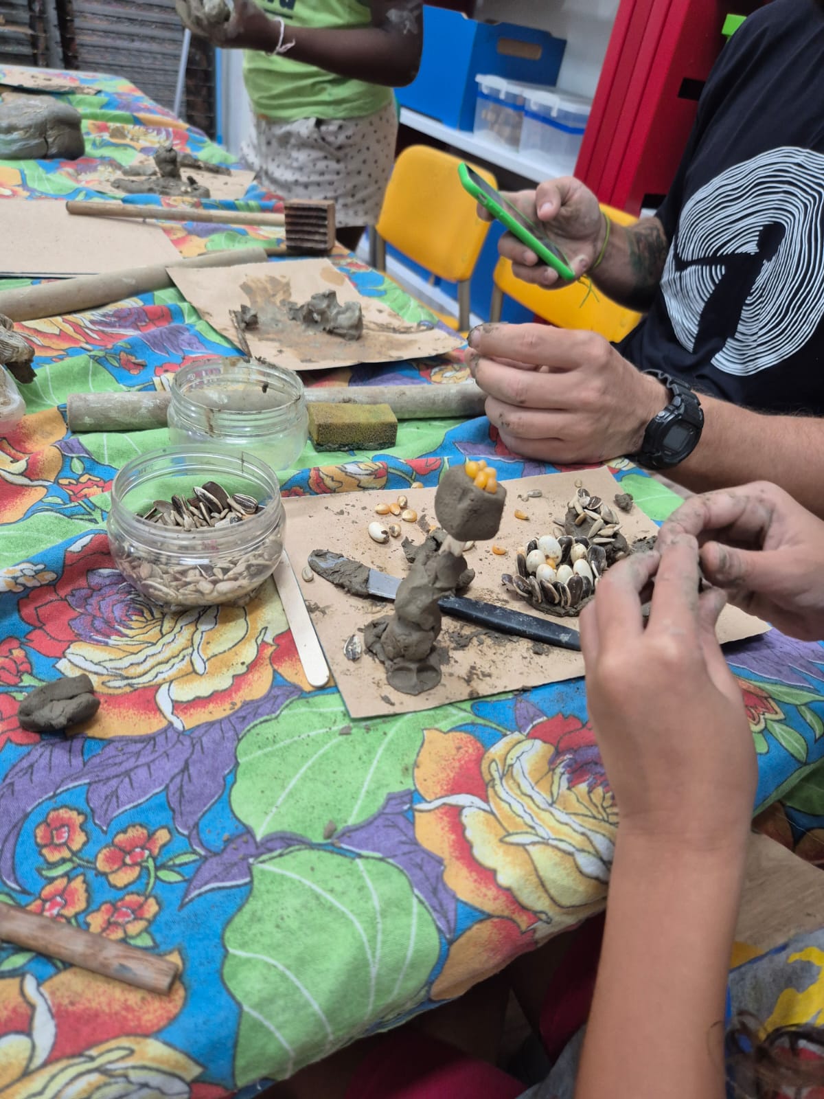 Foi possível perceber o quanto o grupo esteve atento ao ouvir as histórias sobre a criação das caixas e dos componentes. Descobrir que cada detalhe foi pensado e construído ali mesmo tornou tudo ainda mais especial.