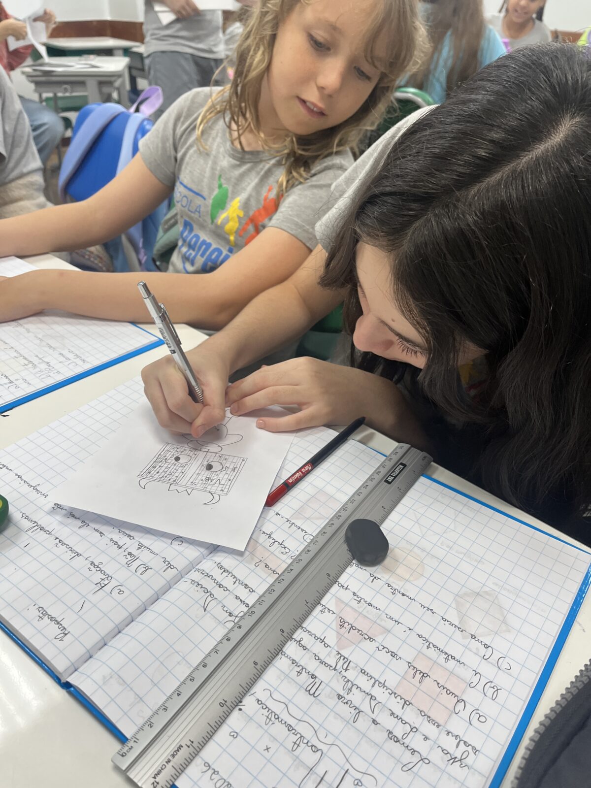 Em seguida, foram desafiadas a resolver os problemas propostos no livro, enfrentando as situações-problema, testando estratégias e revisando cálculos.