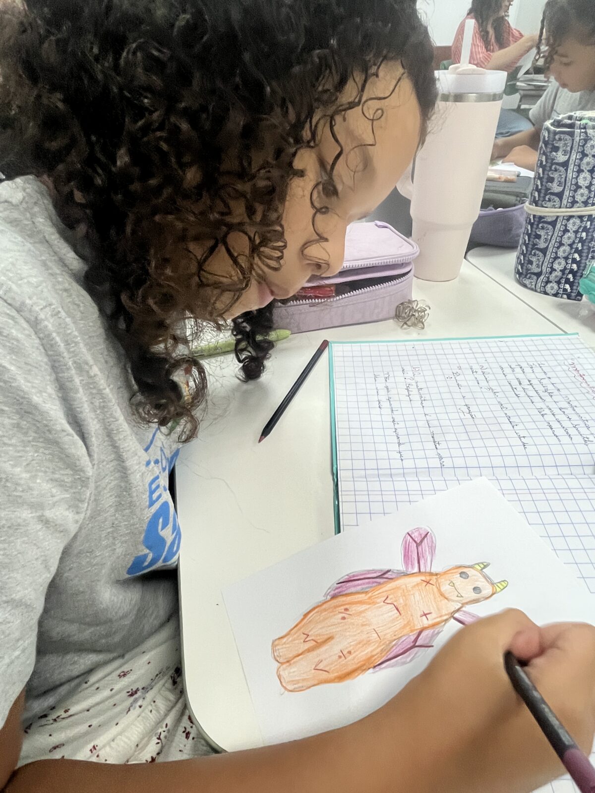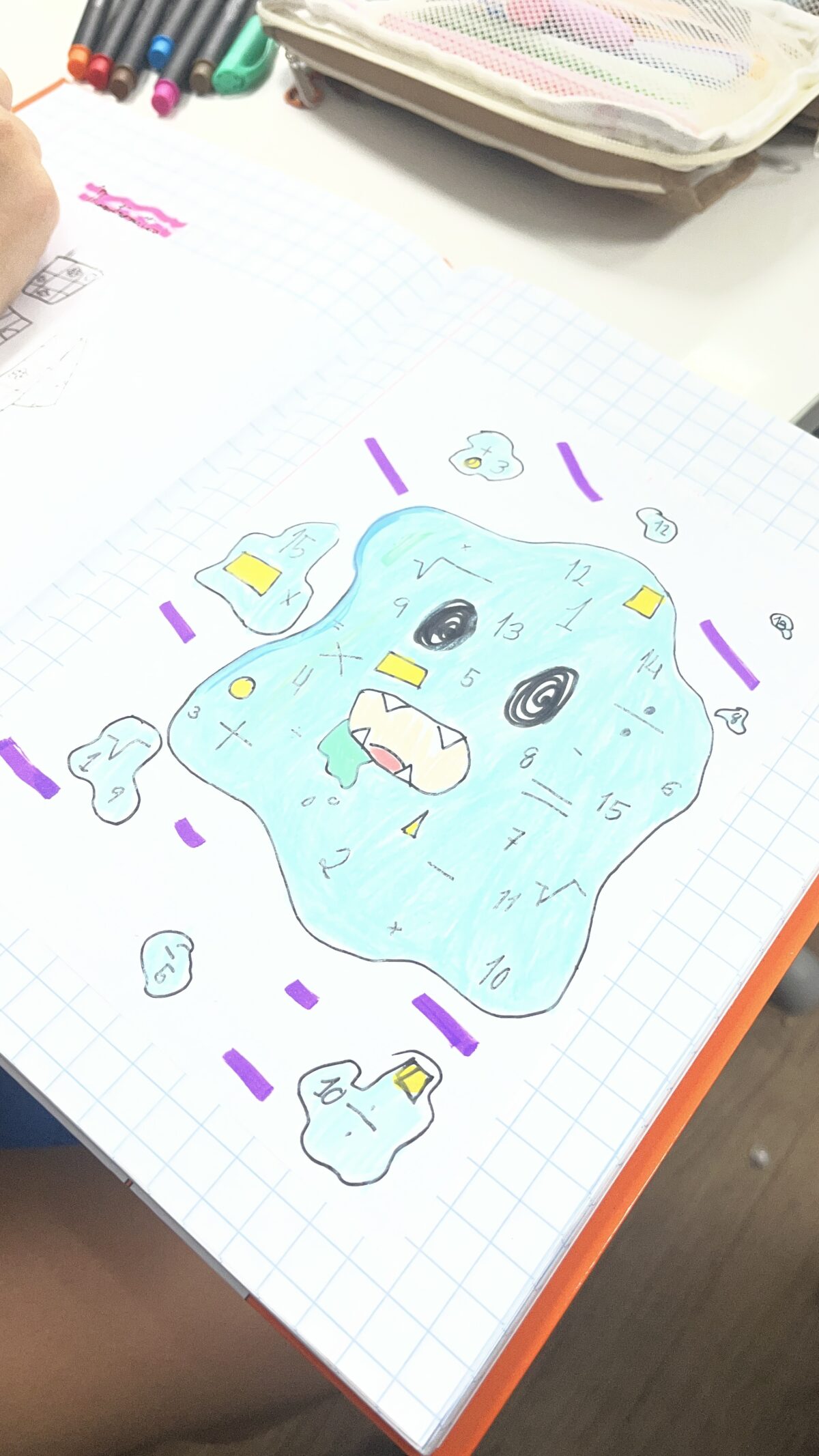 A partir dessa conversa, cada criança criou o seu próprio “monstro da matemática”, representando através de um desenho aquilo que sente diante dos desafios matemáticos. Surgiram monstros dos mais variados feitios.