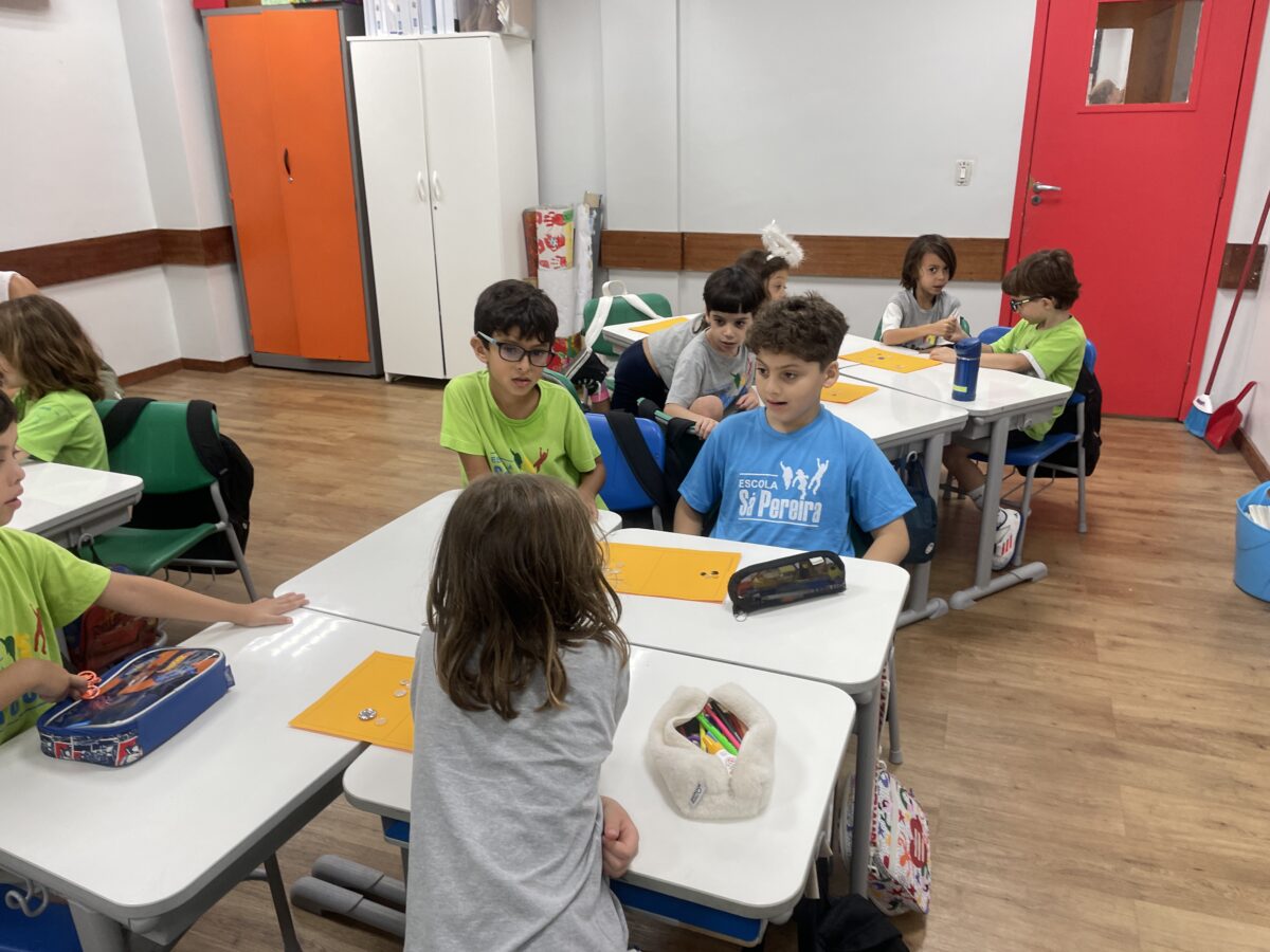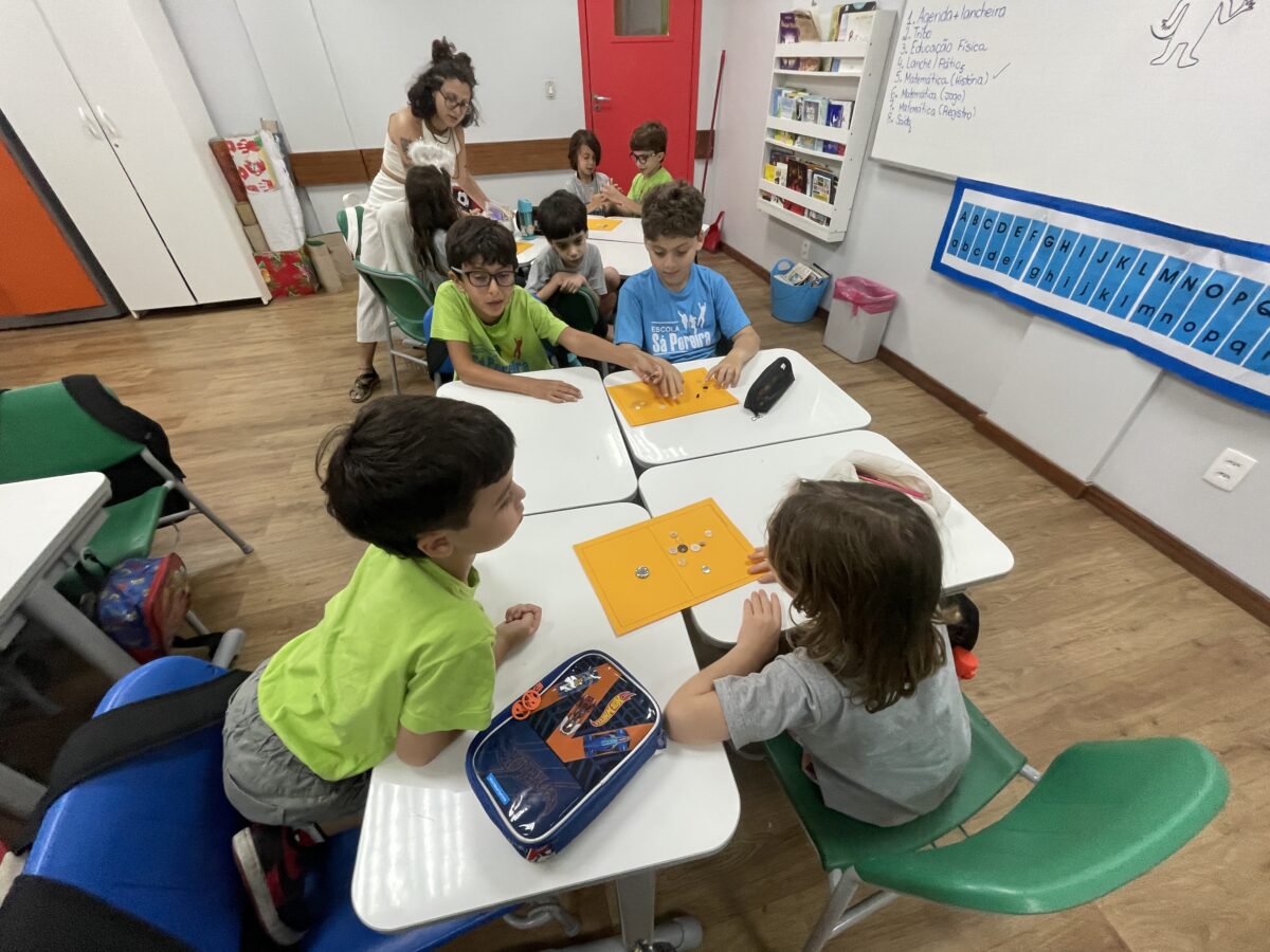 Essas reflexões acontecem por meio de jogos, situações-problema e atividades coletivas.