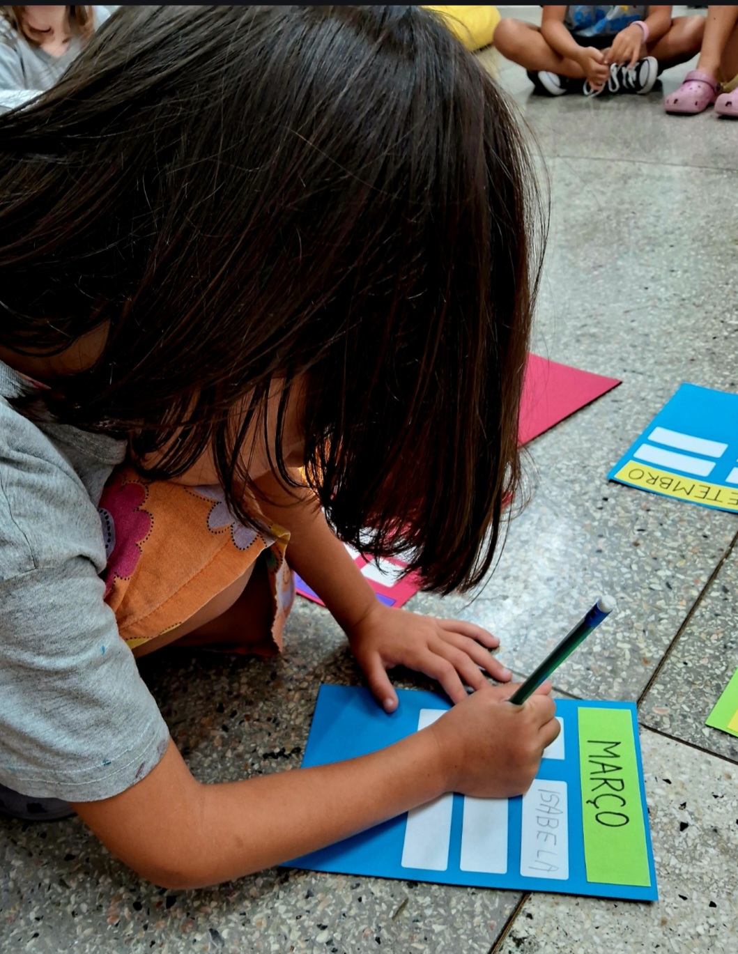 Em comum, todos carregavam gestos de cuidado e proximidade. A leitura compartilhada desses bilhetes em sala abriu espaço para uma investigação sobre como esse tipo de texto se organiza. As crianças observaram diferentes grafias, perceberam elementos que costumam aparecer com frequência, como a forma de iniciar e finalizar a mensagem, e comentaram sobre o uso de pontuação e a disposição do texto no papel.