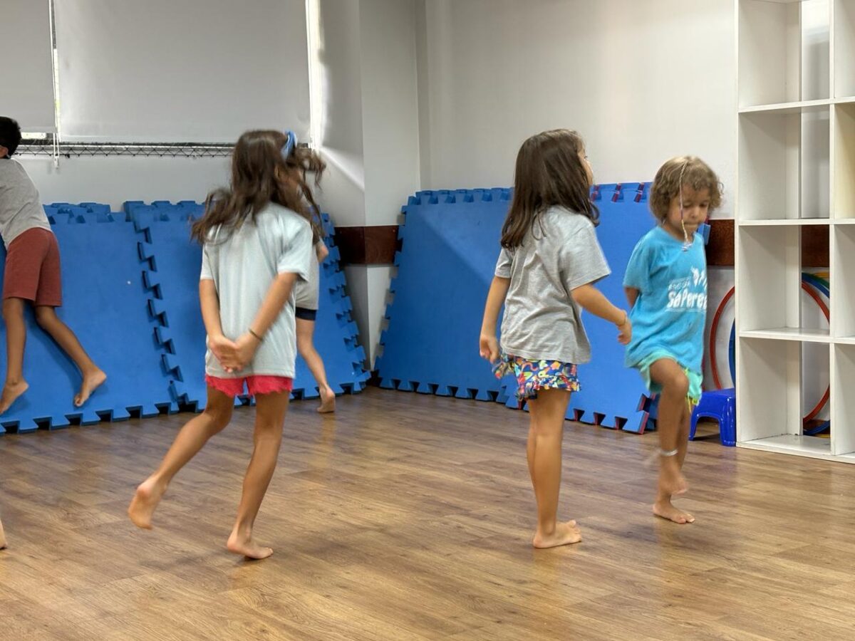 As turmas de F2 e F3 iniciaram o processo de sensibilização para o projeto institucional “Ginga e corpo: quando o esporte sonha ser jogo”. Começamos nosso percurso conversando sobre os combinados e sobre a organização das aulas de Dança, apresentando esse espaço como um lugar de criação, escuta e movimento.