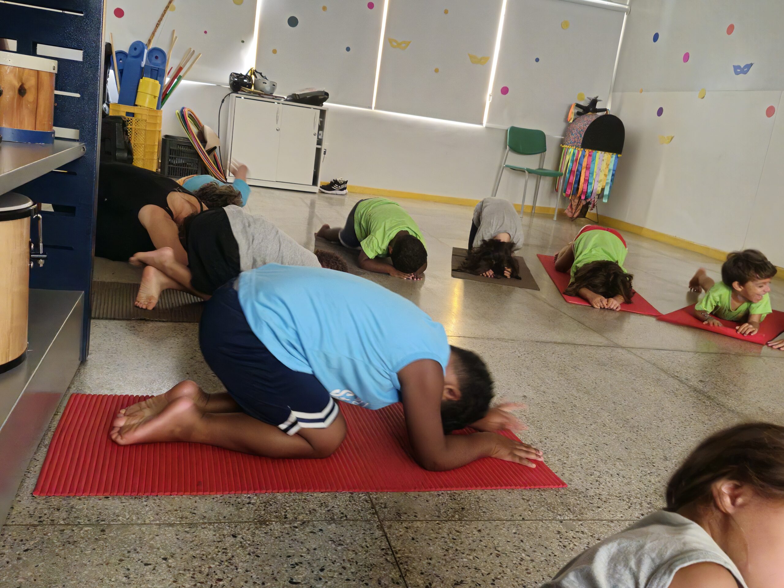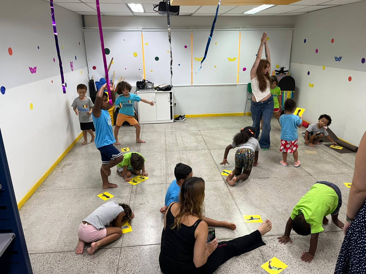 Através de brincadeiras, as crianças têm vivenciado diferentes ásanas (posturas), ampliando a visão sobre suas emoções, limites e possibilidades do corpo, e sobre o cuidado com o outro.