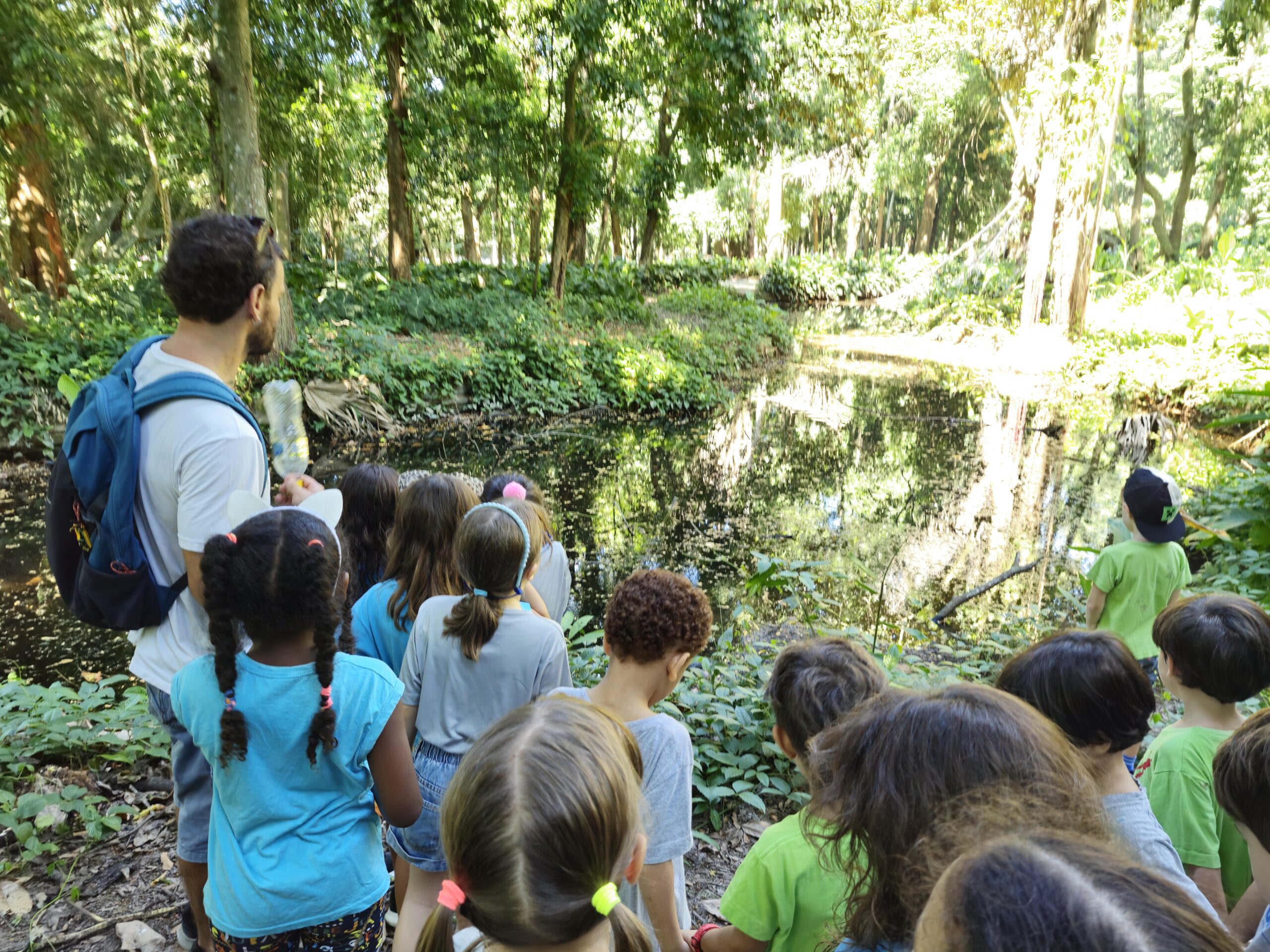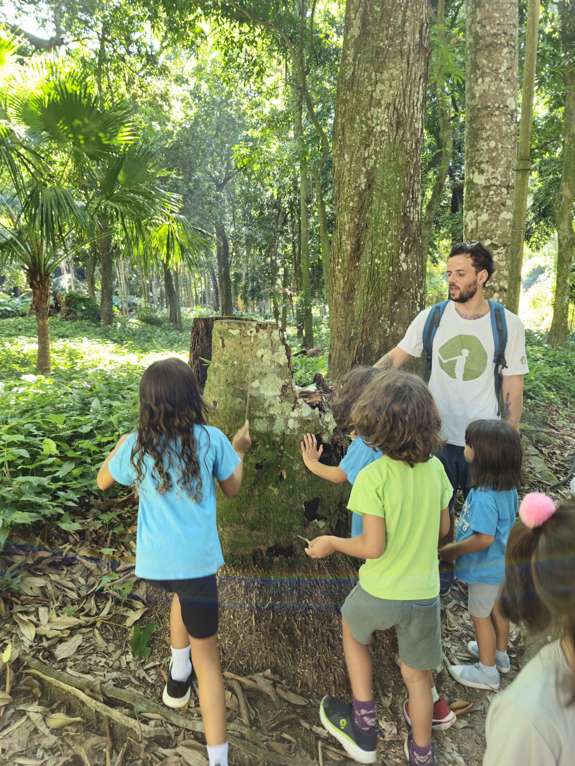 Nesta semana, as três turmas do Ateliê realizaram o primeiro passeio ao Parque Lage, com a companhia do Moleque Mateiro.