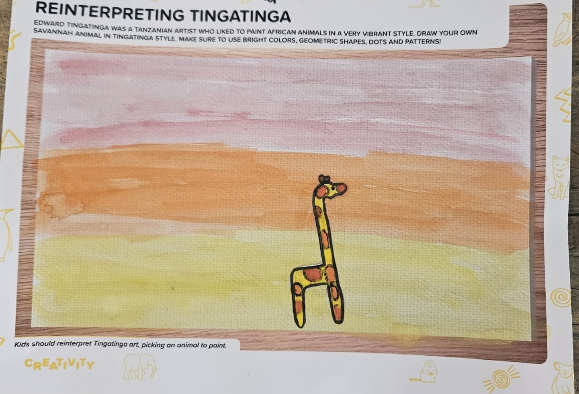 Depois de explorarem a floresta tropical, as crianças embarcaram em uma aventura pela Savana Africana, onde conheceram seus animais e se encantaram com a arte vibrante de Edward Tingatinga, artista da Tanzânia.