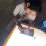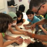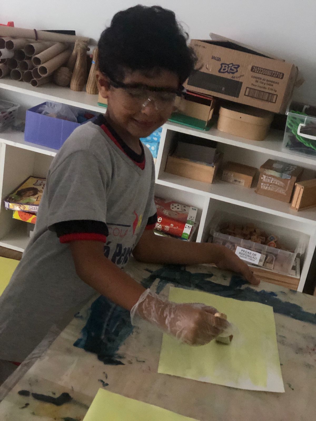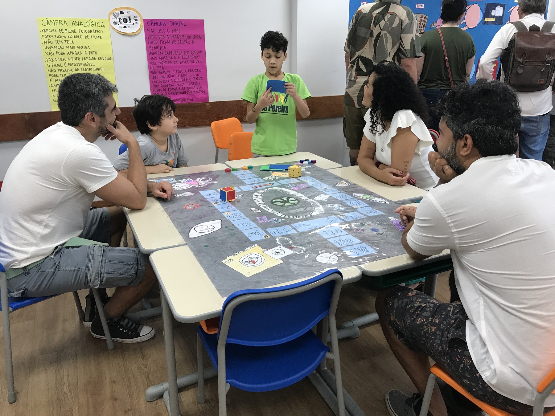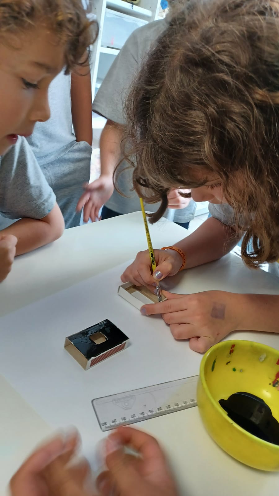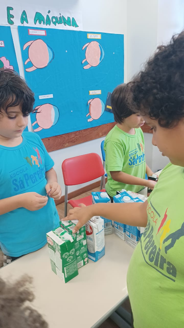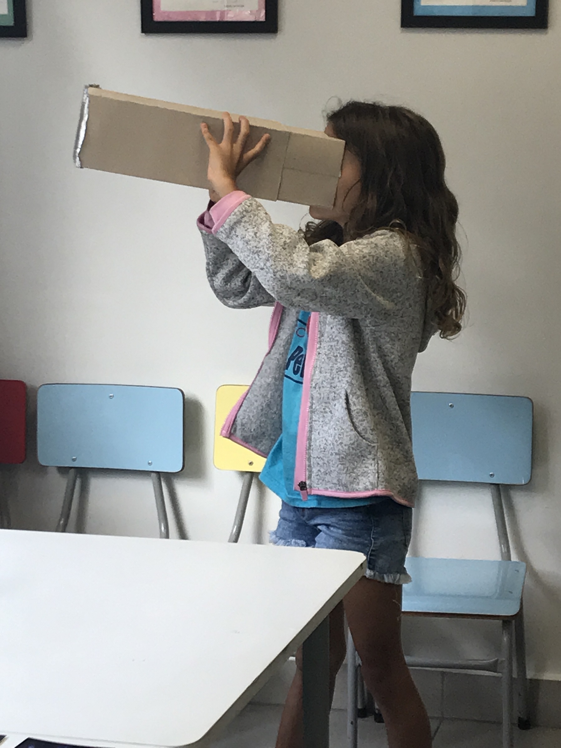 Marcaram os cortes das caixinhas, pintaram, colocaram o alumínio, o papel cartão, ajudaram a vedar para garantir que não entraria luz e, quando finalmente viram o filme sendo bobinado manualmente para dentro da câmera escura, compreenderam o funcionamento da máquina.